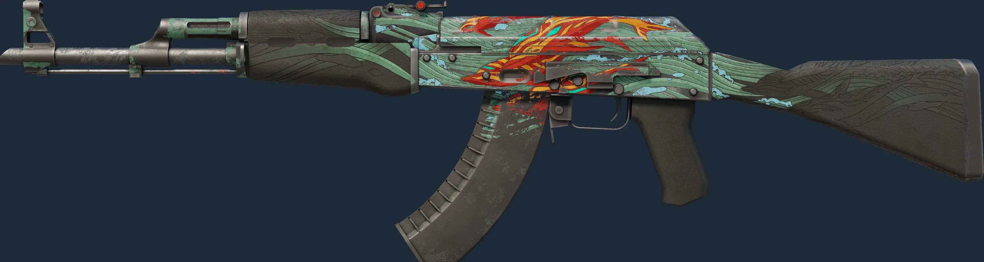 The AK-47 | Aquamarine Revenge is a Covert grade skin for the AK-47 in Counter-Strike 2. It features a Custom Paint Job finish and was designed by PoignantEnvy.