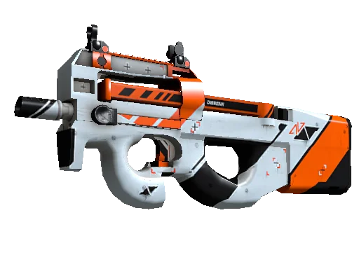 This AK-47 has been painted in a "Custom Paint Job" style, with the Asiimov finish. This style enables extremely customized looks in a full range of colors. The skin has been painted in a color scheme of orange, black and white. Different pattern indexes have no effect on the Asiimov finish. The skin uses the old legacy model.