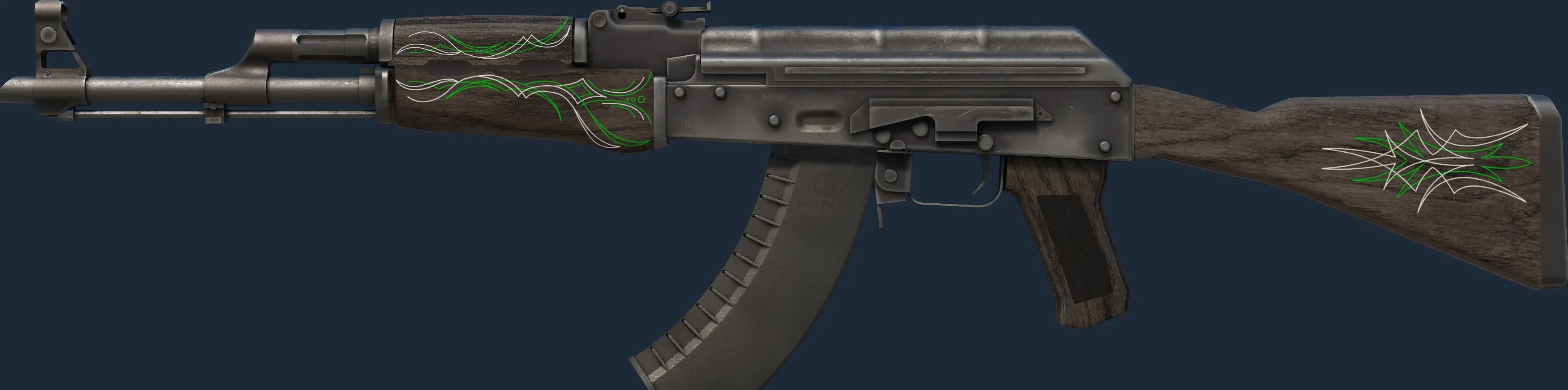 The AK-47 | Emerald Pinstripe is a Covert grade skin for the AK-47 in Counter-Strike 2. It features a Custom Paint Job finish and was designed by Valve.