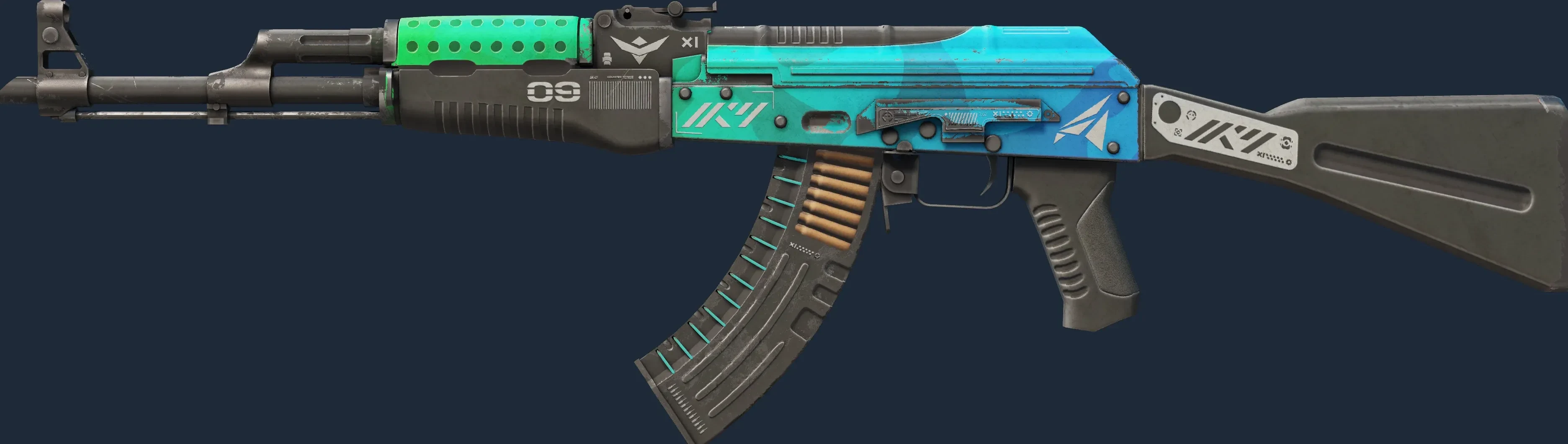 The AK-47 | Ice Coaled is a Covert grade skin for the AK-47 in Counter-Strike 2. It features a Custom Paint Job finish and was designed by REINCARNATION.