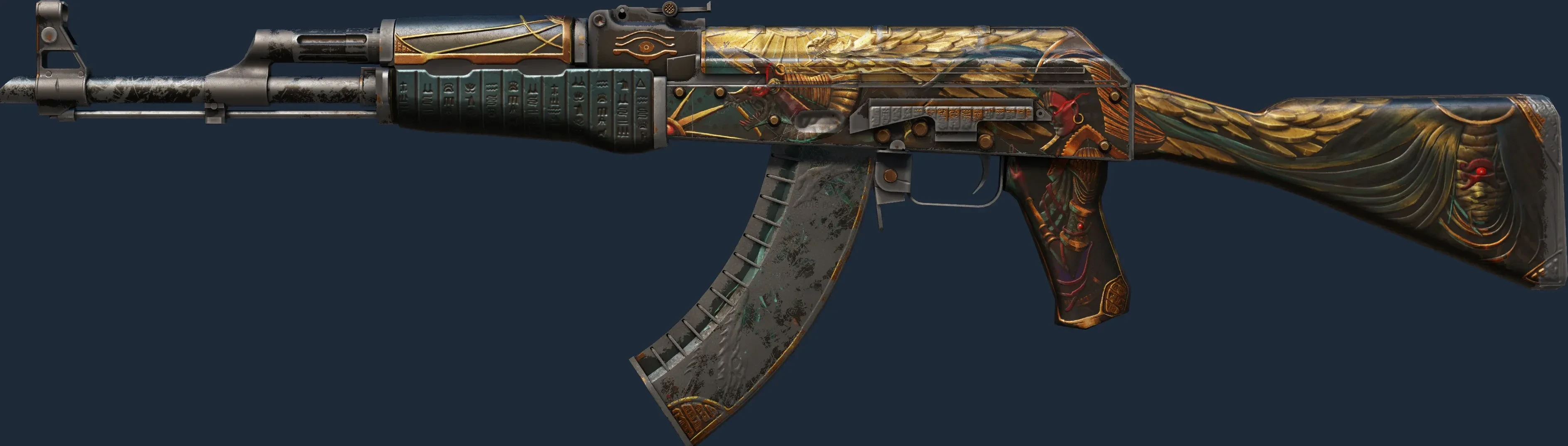 The AK-47 | Legion Of Anubis is a Covert grade skin for the AK-47 in Counter-Strike 2. It features a Custom Paint Job finish and was designed by apel8.
