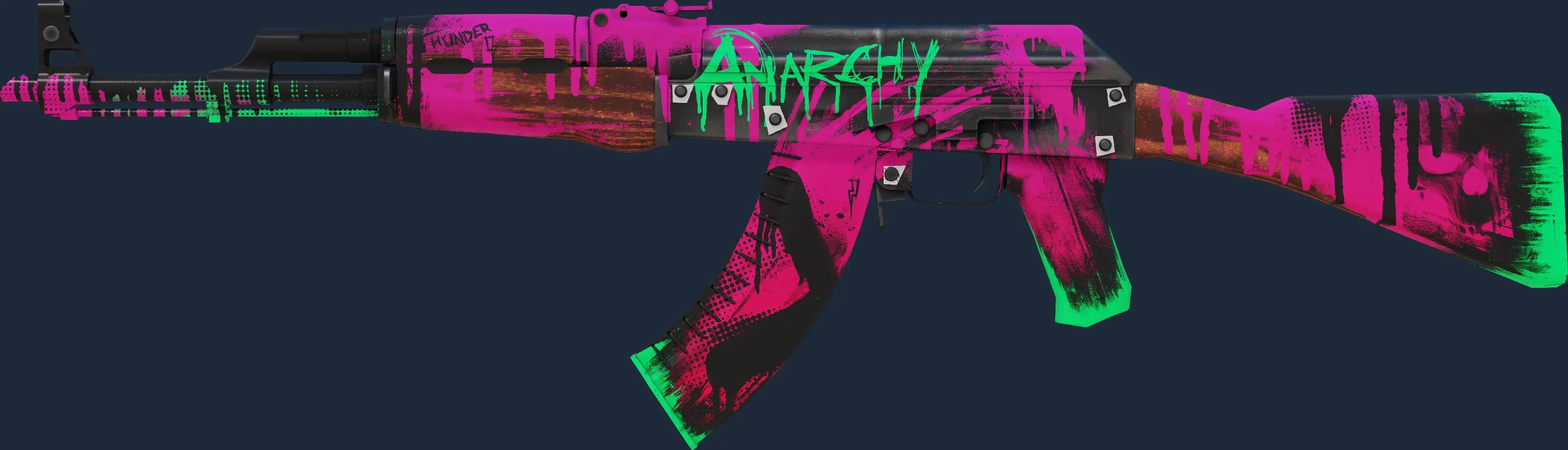 The AK-47 | Neon Revolution is a Covert grade skin for the AK-47 in Counter-Strike 2. It features a Custom Paint Job finish and was designed by Coridium.