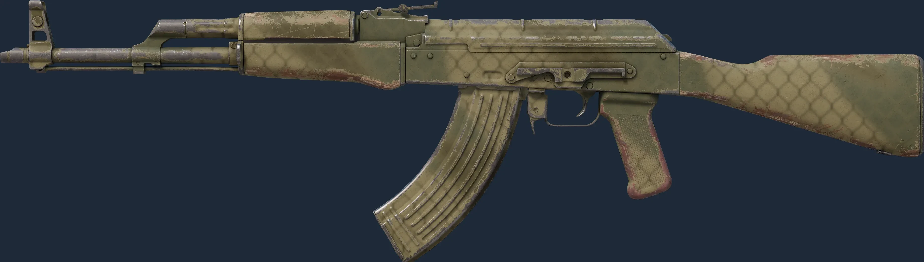 The AK-47 | Safari Mesh is a Covert grade skin for the AK-47 in Counter-Strike 2. It features a Custom Paint Job finish and was designed by Valve.