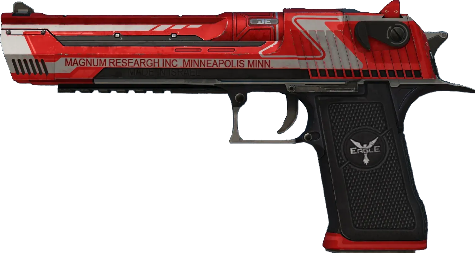 As expensive as it is powerful, the pistols/desert-eagle" class="text-orange-500 hover:underline underline-offset-4 decoration-orange-500/30">Desert Eagle is an iconic pistol that is difficult to master but surprisingly accurate at long range. A custom paint job with a bright red base and white detailing has been applied. _Man your stations_