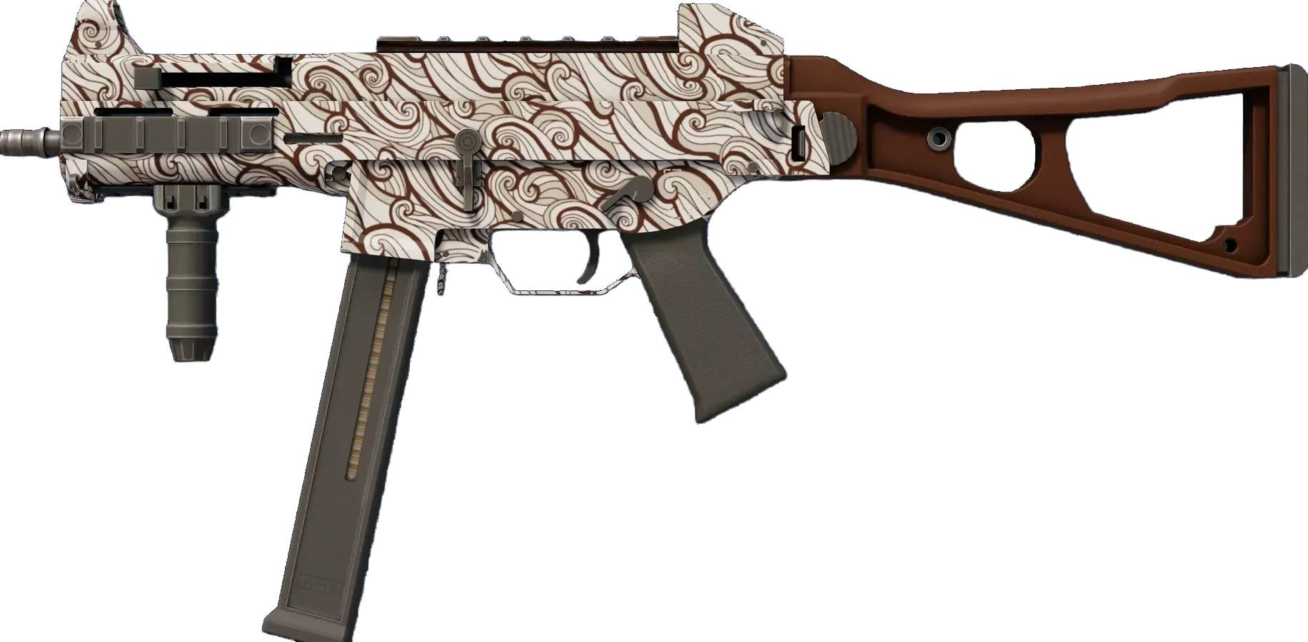 The misunderstood middle child of the SMG family, the UMP45's small magazine is the only drawback to an otherwise versatile close-quarters automatic. It has been painted using a hydrographic of a gel pen doodle.