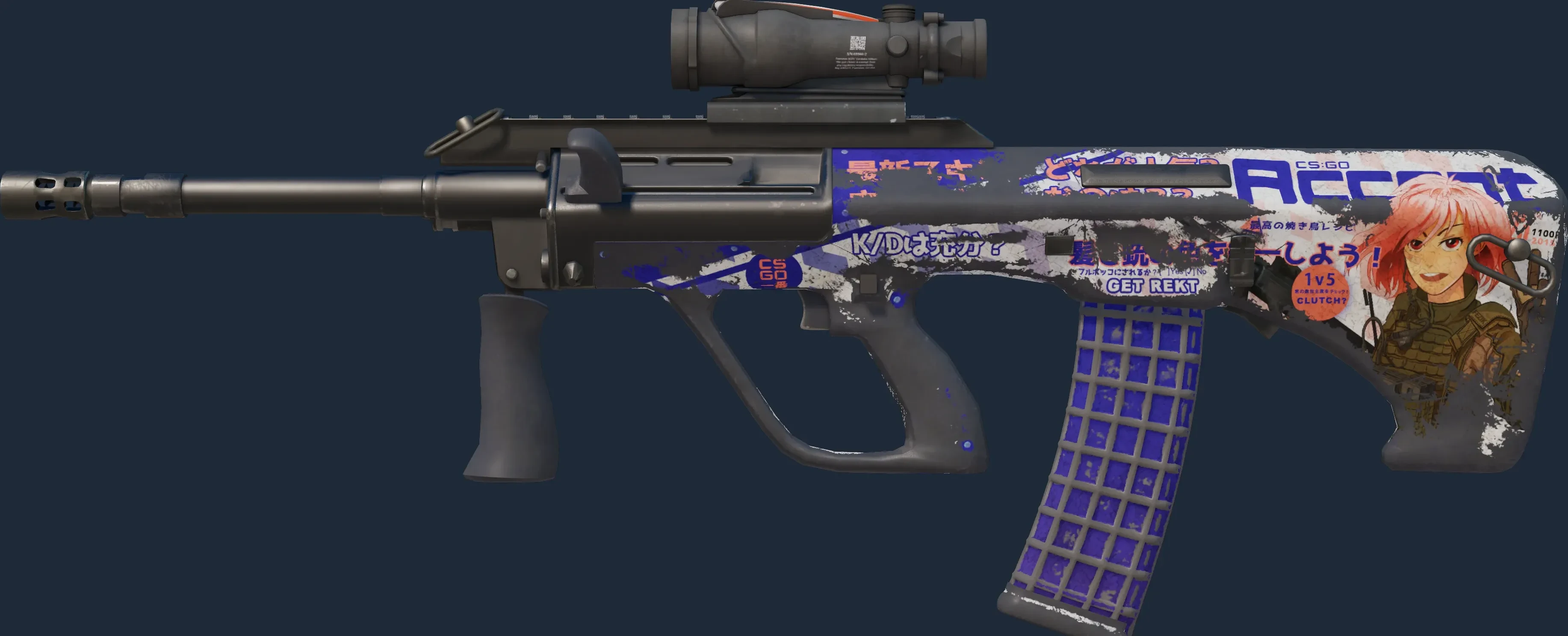 The AUG | Akihabara Accept is a Covert grade skin for the AUG in Counter-Strike 2. It features a Custom Paint Job finish and was designed by Valve.