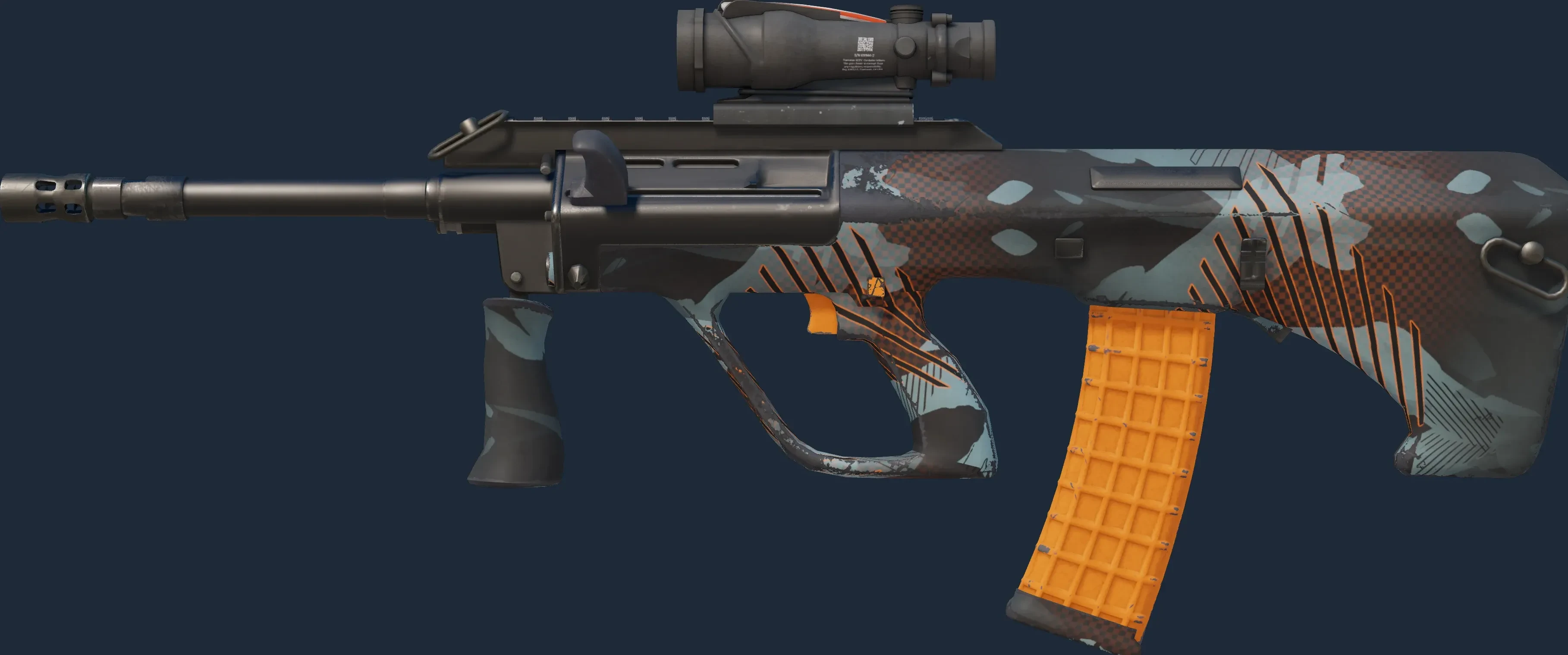 The AUG | Amber Slipstream is a Covert grade skin for the AUG in Counter-Strike 2. It features a Custom Paint Job finish and was designed by dabes.