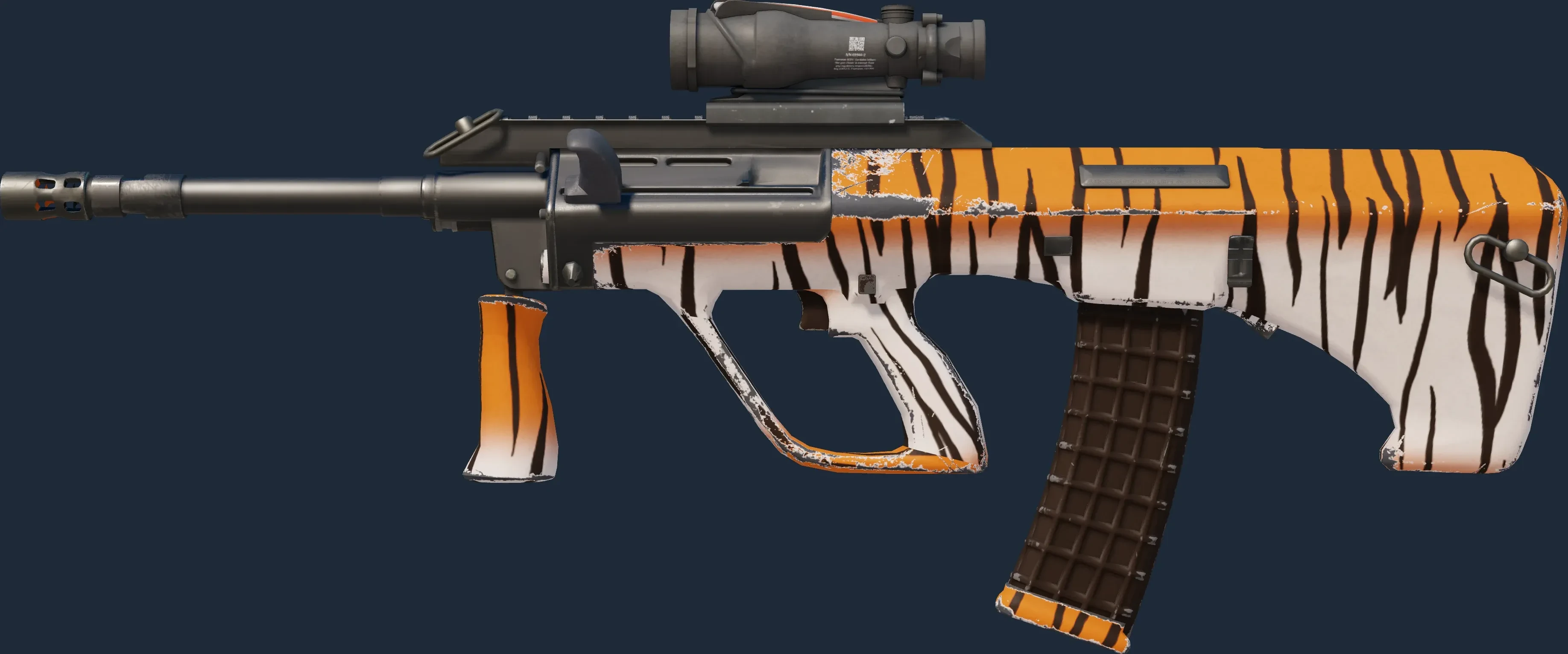 The AUG | Bengal Tiger is a Covert grade skin for the AUG in Counter-Strike 2. It features a Custom Paint Job finish and was designed by Valve.