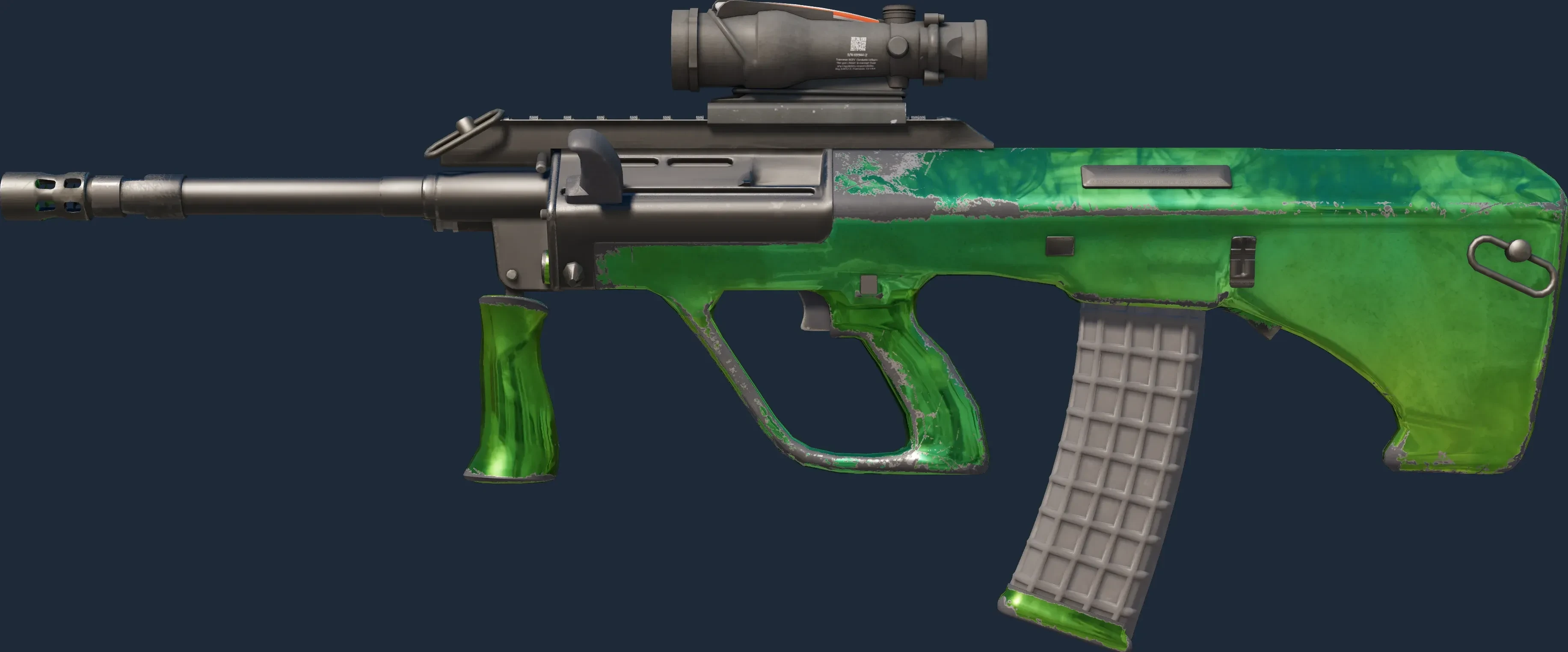 The AUG | Carved Jade is a Covert grade skin for the AUG in Counter-Strike 2. It features a Custom Paint Job finish and was designed by Valve.