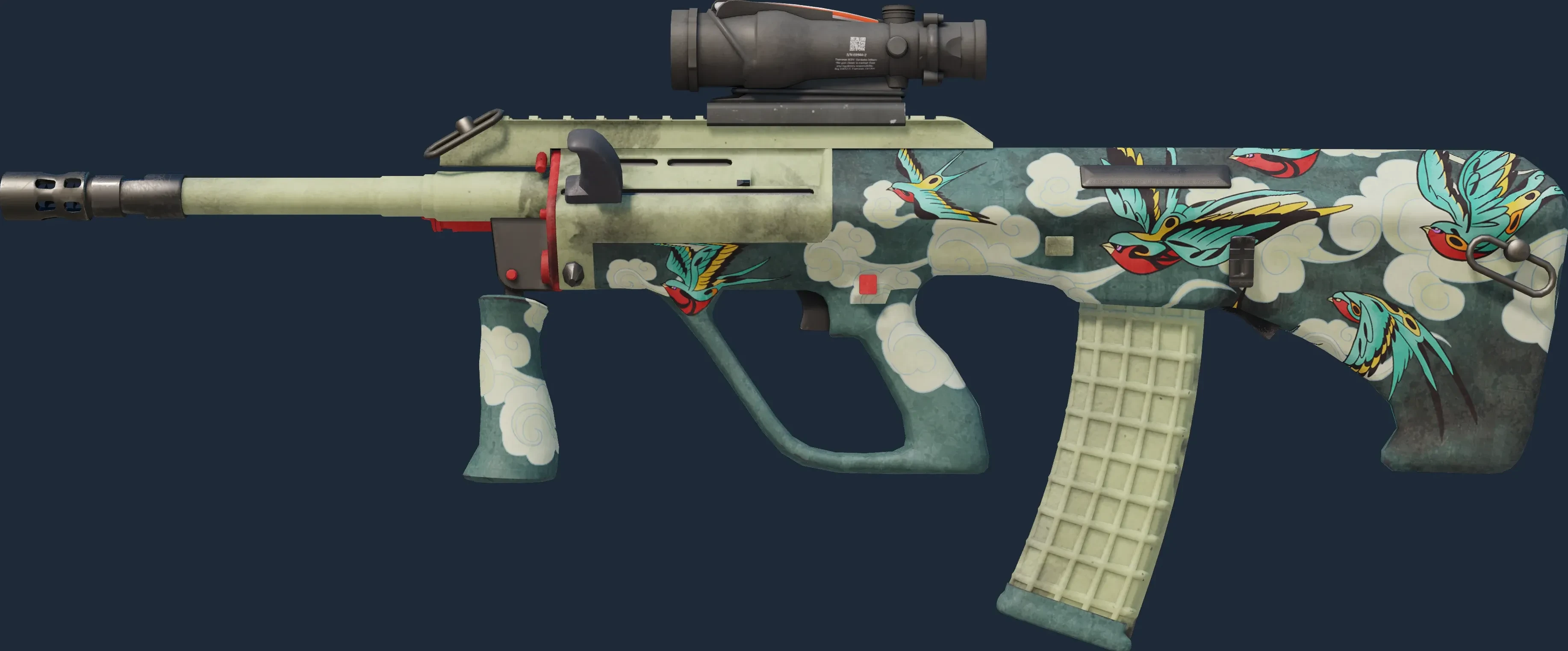 The AUG | Fleet Flock is a Covert grade skin for the AUG in Counter-Strike 2. It features a Custom Paint Job finish and was designed by PoignantEnvy.