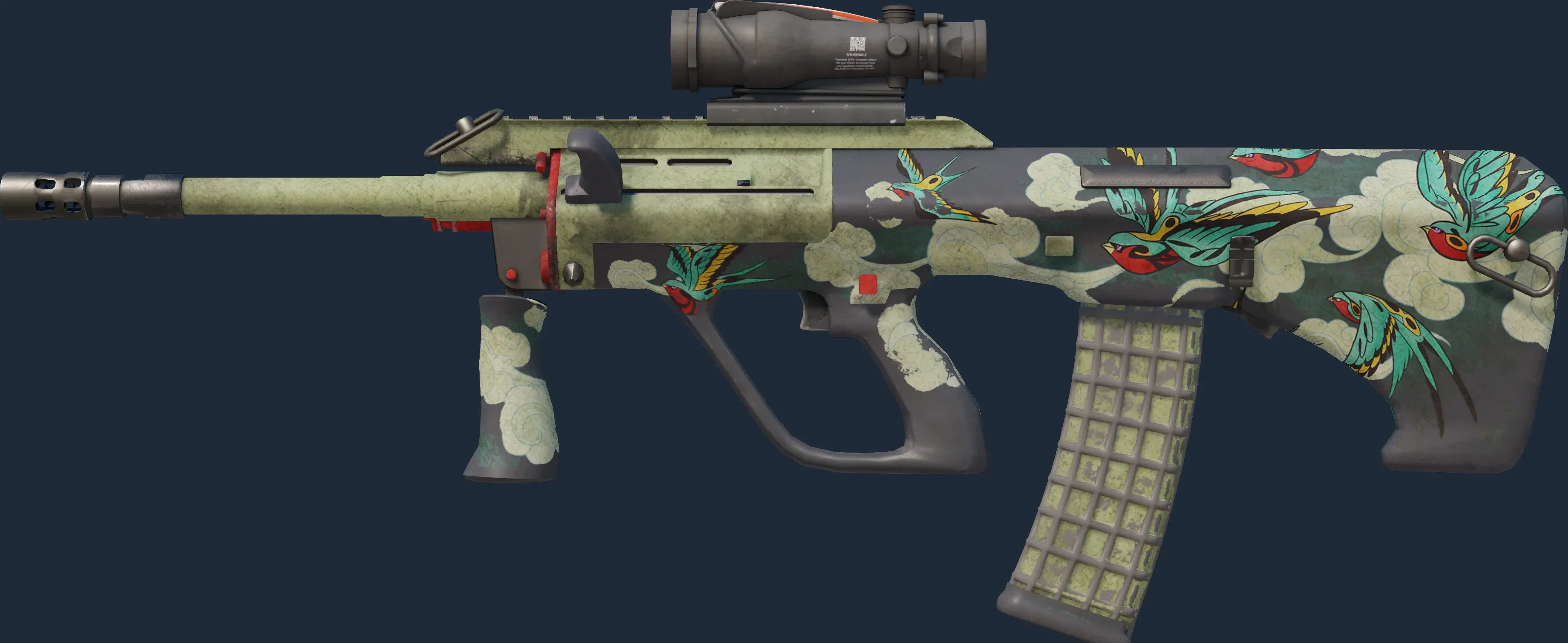 The AUG | Fleet Flock is a Covert grade skin for the AUG in Counter-Strike 2. It features a Custom Paint Job finish and was designed by PoignantEnvy.