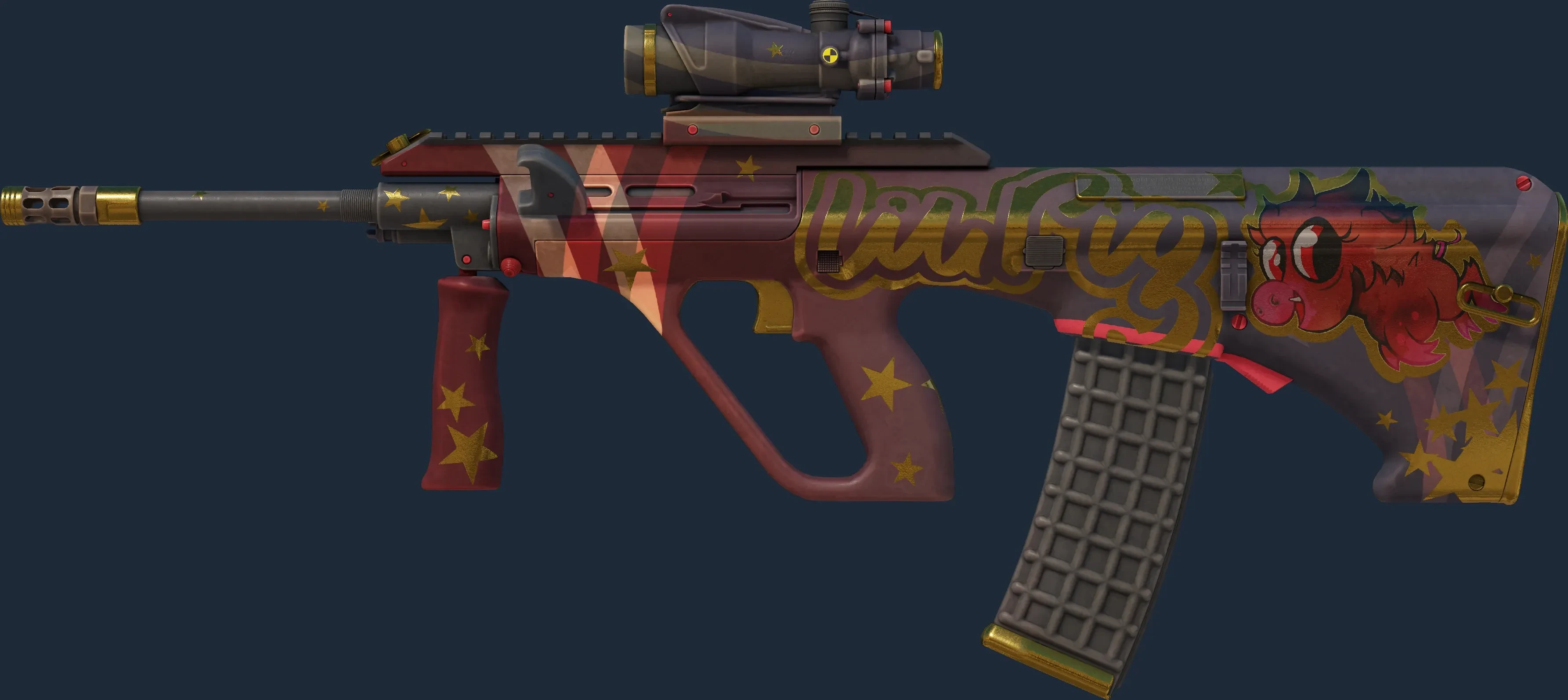 The AUG | Lil Pig is a Covert grade skin for the AUG in Counter-Strike 2. It features a Custom Paint Job finish and was designed by Valve.