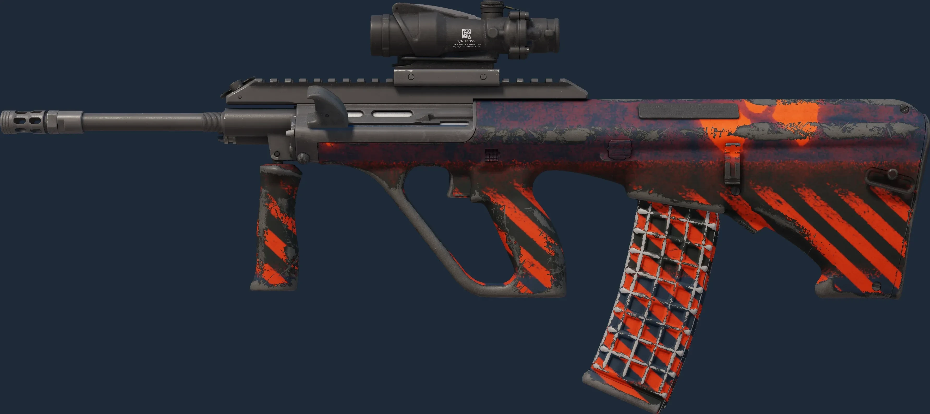 The AUG | Radiation Hazard is a Covert grade skin for the AUG in Counter-Strike 2. It features a Custom Paint Job finish and was designed by Valve.