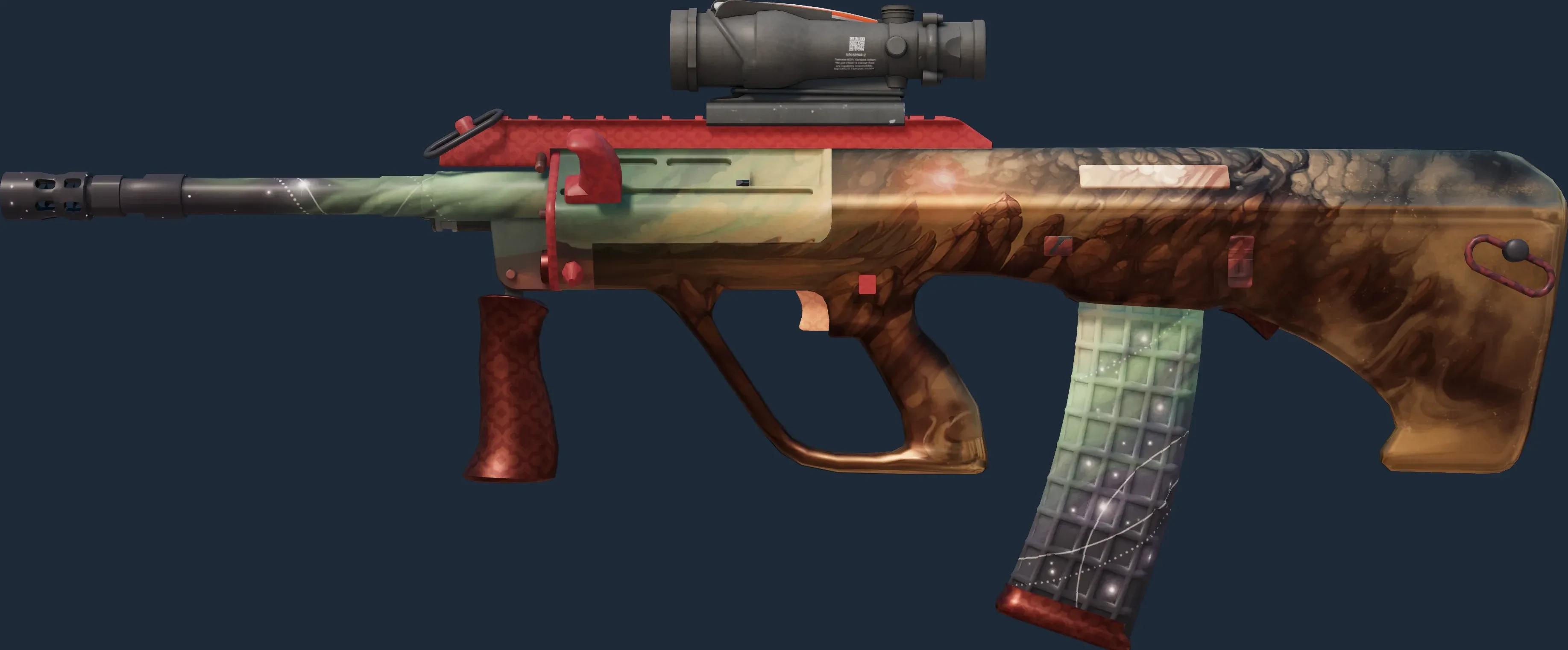 The AUG | Sand Storm is a Covert grade skin for the AUG in Counter-Strike 2. It features a Custom Paint Job finish and was designed by Valve.