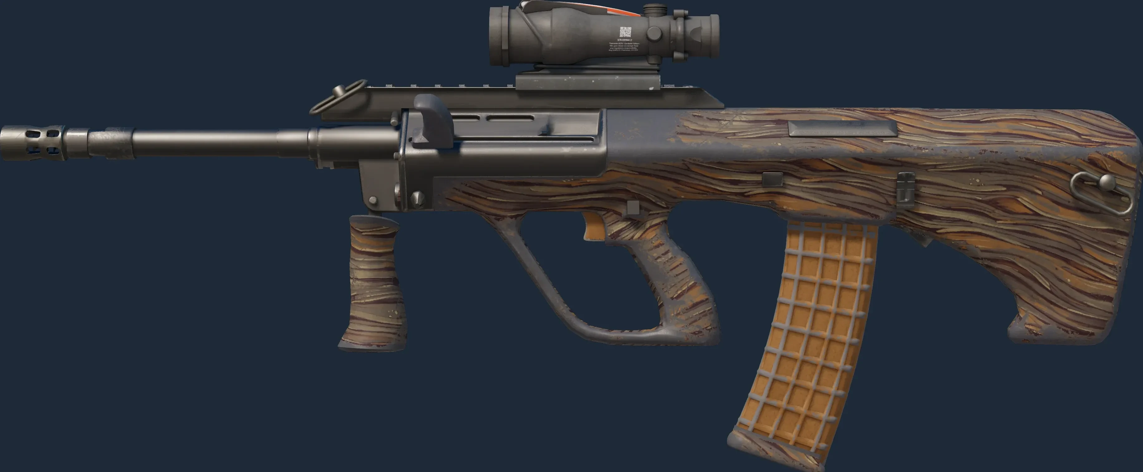 The AUG | Spalted Wood is a Covert grade skin for the AUG in Counter-Strike 2. It features a Custom Paint Job finish and was designed by Valve.