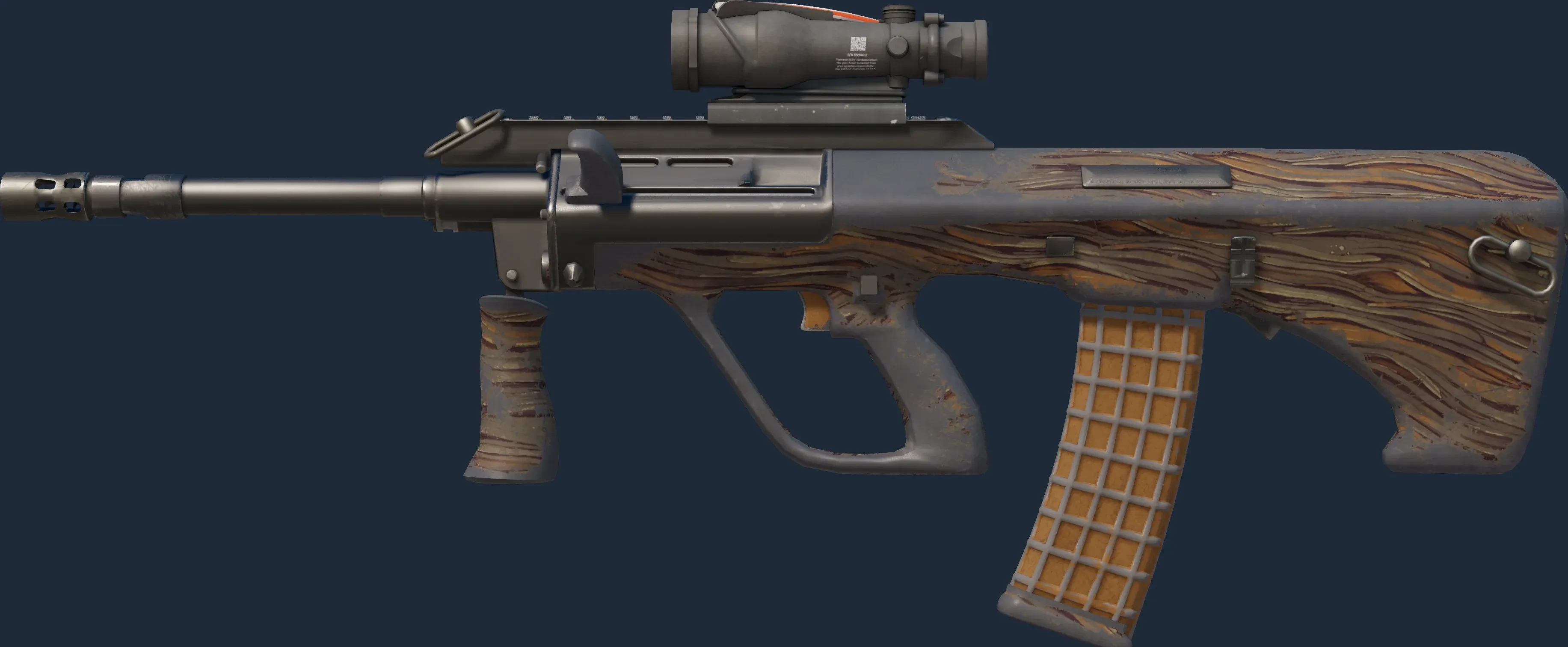 The AUG | Spalted Wood is a Covert grade skin for the AUG in Counter-Strike 2. It features a Custom Paint Job finish and was designed by Valve.