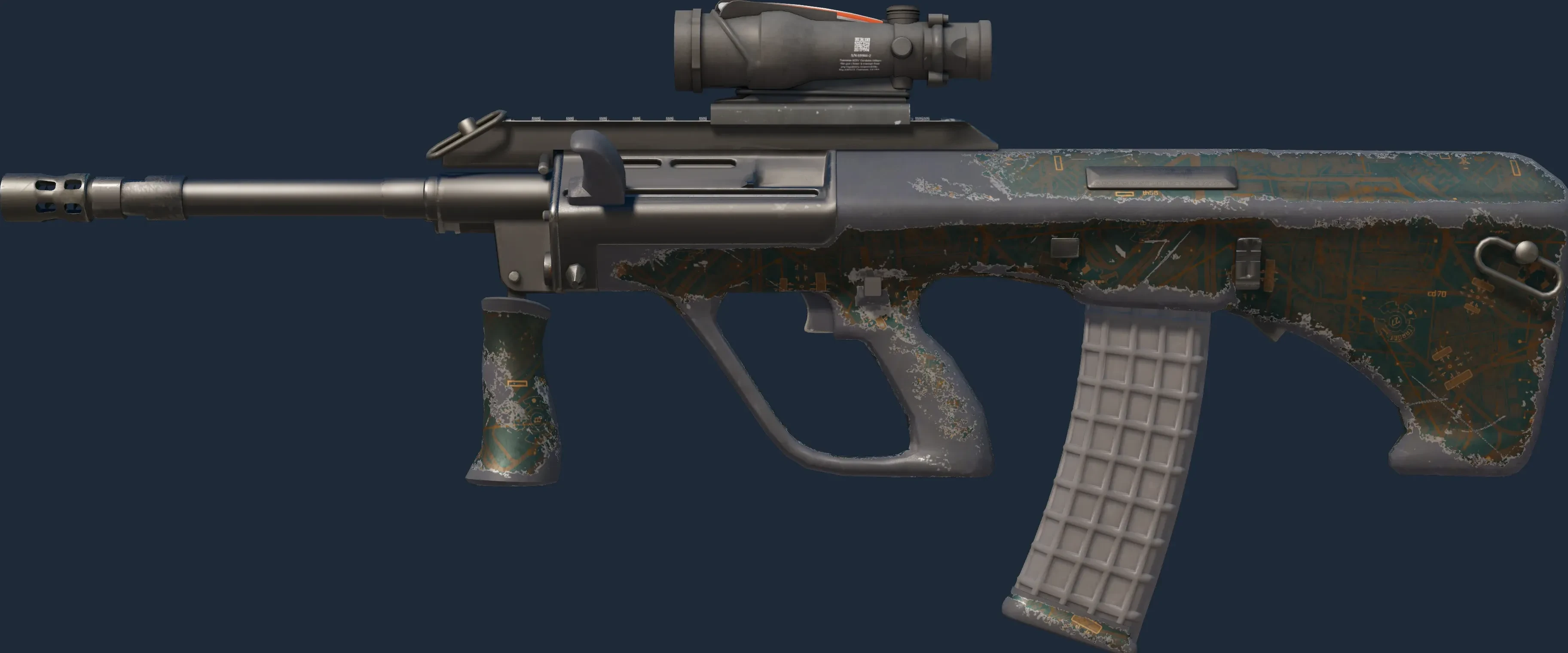 The AUG | Surveillance is a Covert grade skin for the AUG in Counter-Strike 2. It features a Custom Paint Job finish and was designed by Valve.
