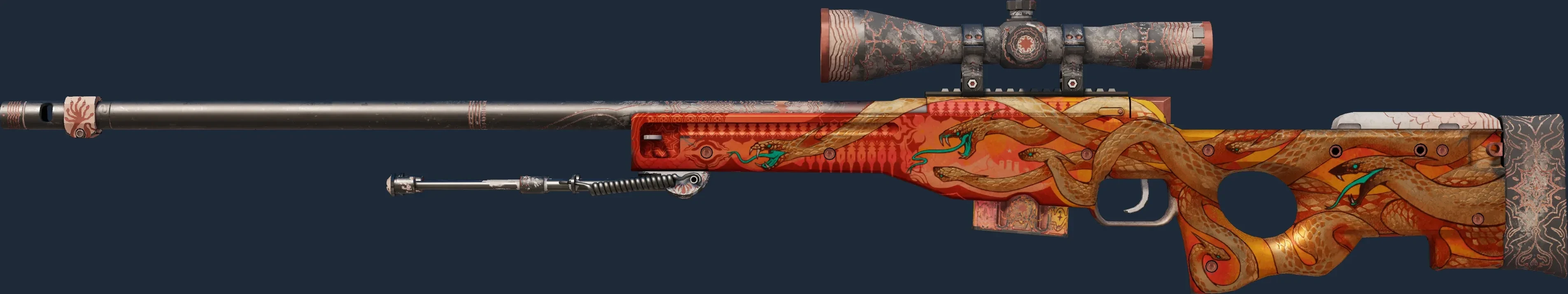 The AWP | Desert Hydra is a Covert grade skin for the AWP in Counter-Strike 2. It features a Custom Paint Job finish and was designed by Valve.