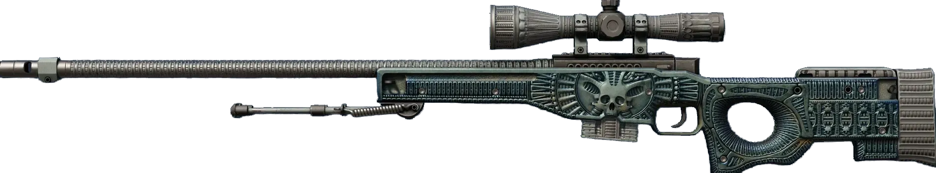 High risk and high reward, the infamous AWP is recognizable by its signature report and one-shot, one-kill policy. The metal on this AWP has been intricately pressed with patterns of interlocking skulls. _Full tilt_