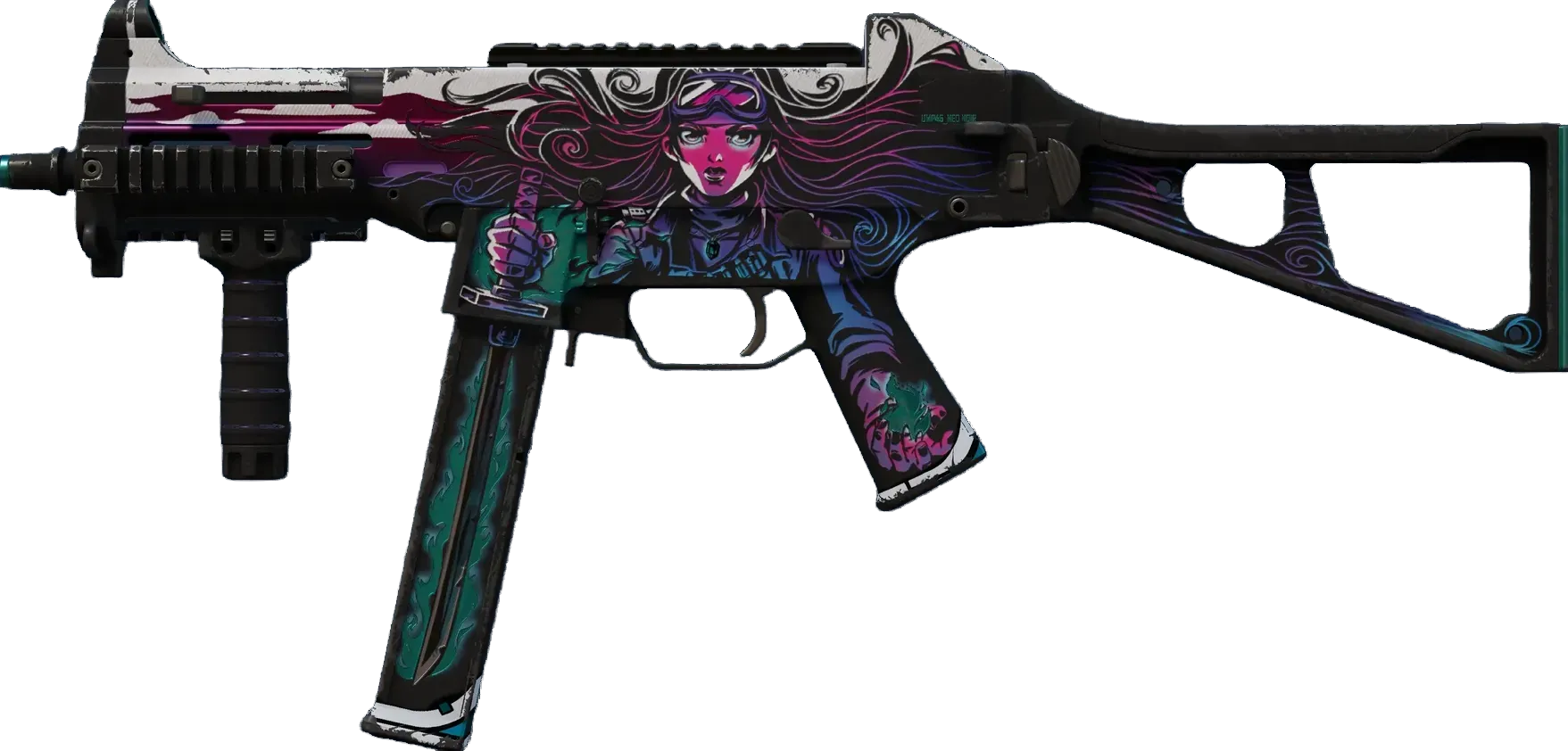 High risk and high reward, the infamous AWP is recognizable by its signature report and one-shot, one-kill policy. It has been custom painted with two stylized blue-magenta women over a grayscale background. _"They took comfort in each other's despair"_