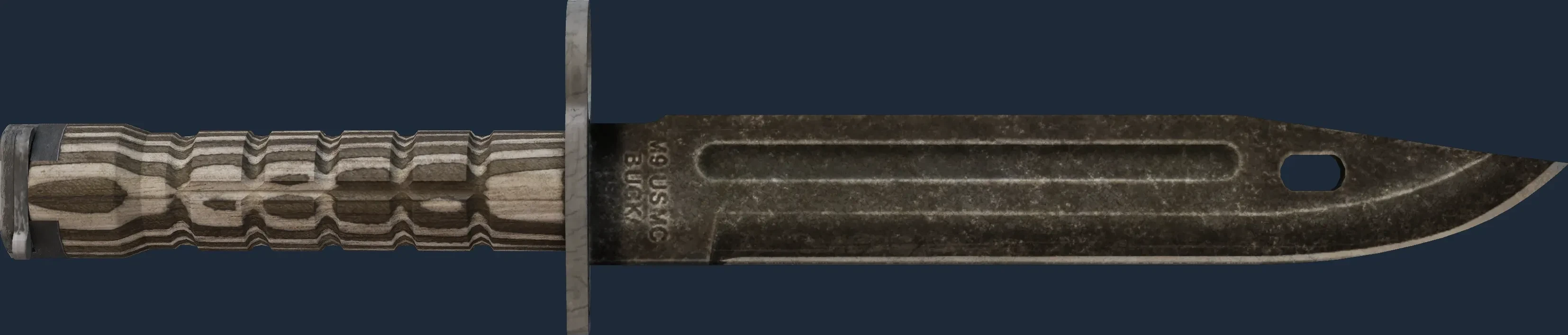 The Bayonet | Black Laminate is a Covert grade skin for the Bayonet in Counter-Strike 2. It features a Custom Paint Job finish and was designed by Valve.