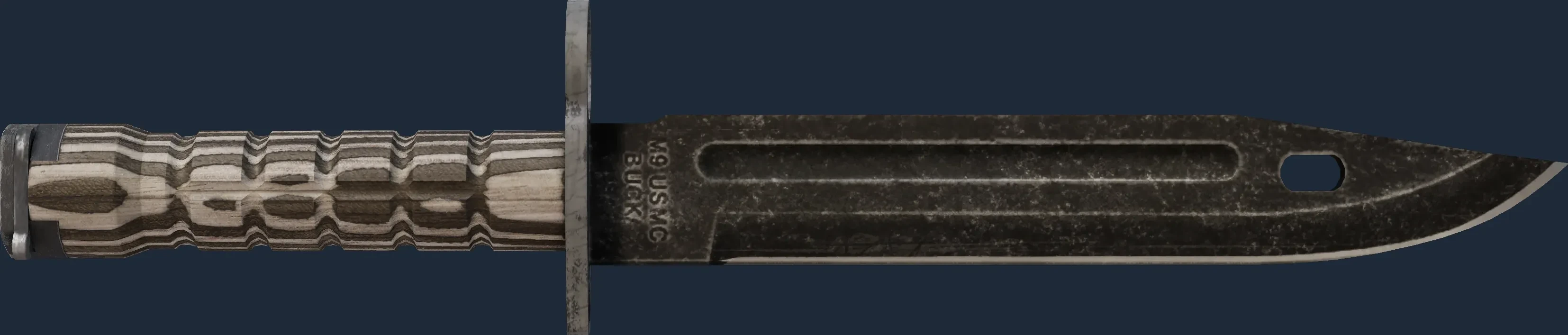 The Bayonet | Black Laminate is a Covert grade skin for the Bayonet in Counter-Strike 2. It features a Custom Paint Job finish and was designed by Valve.