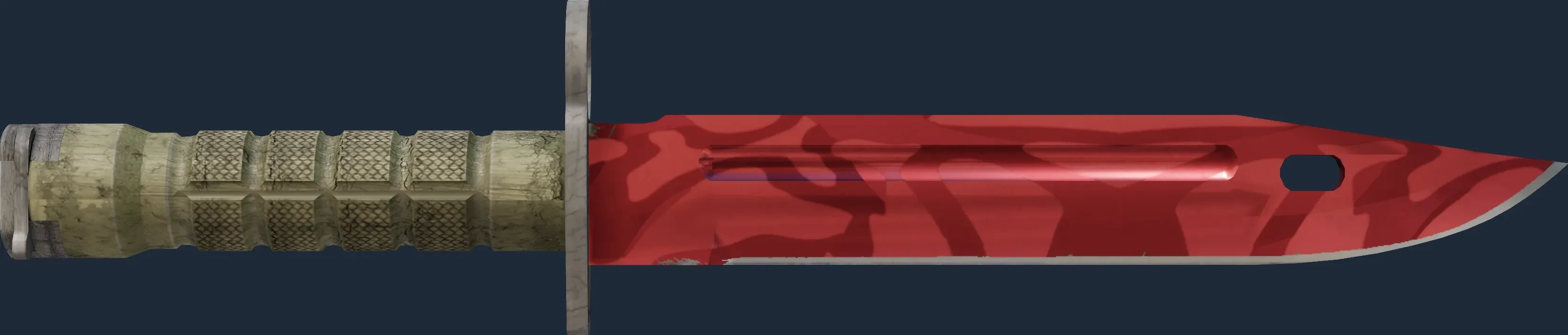 The Bayonet | Slaughter is a Covert grade skin for the Bayonet in Counter-Strike 2. It features a Custom Paint Job finish and was designed by Valve.