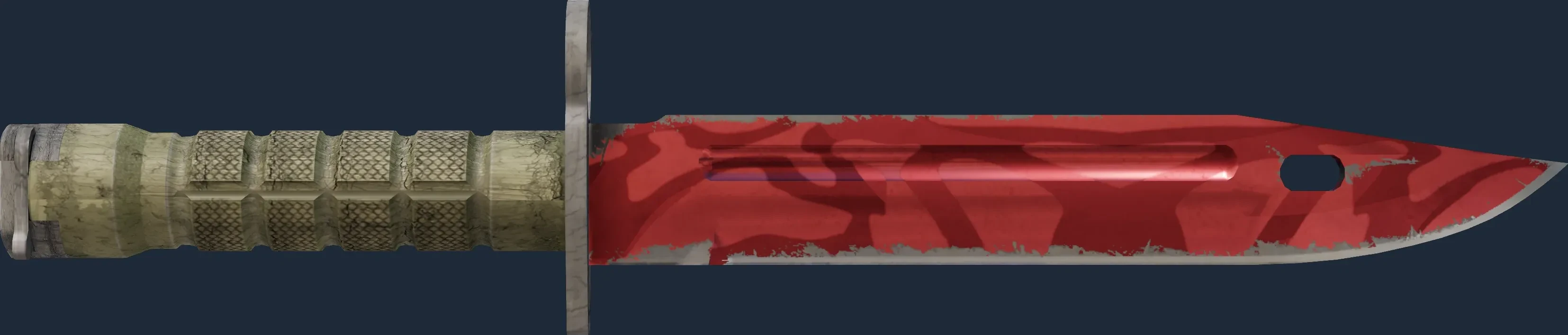 The Bayonet | Slaughter is a Covert grade skin for the Bayonet in Counter-Strike 2. It features a Custom Paint Job finish and was designed by Valve.