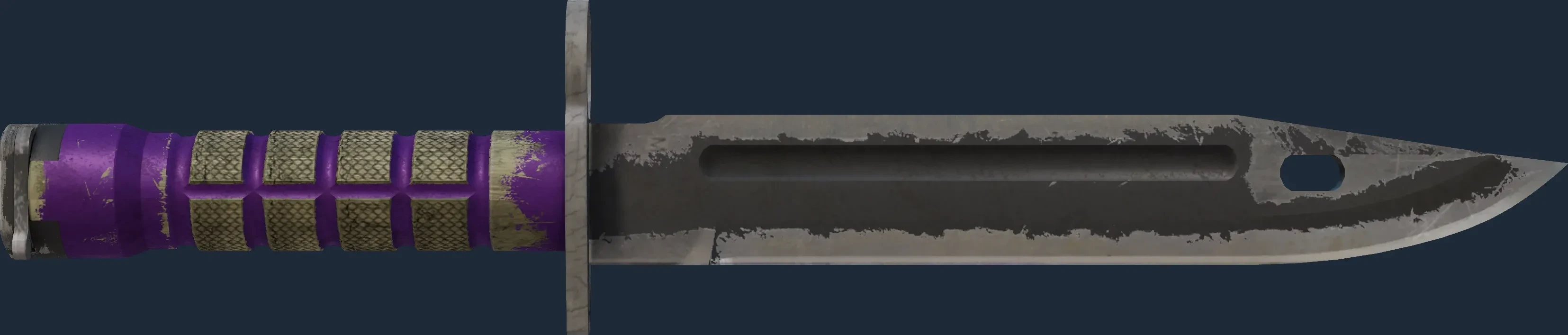 The Bayonet | Ultraviolet is a Covert grade skin for the Bayonet in Counter-Strike 2. It features a Custom Paint Job finish and was designed by Valve.