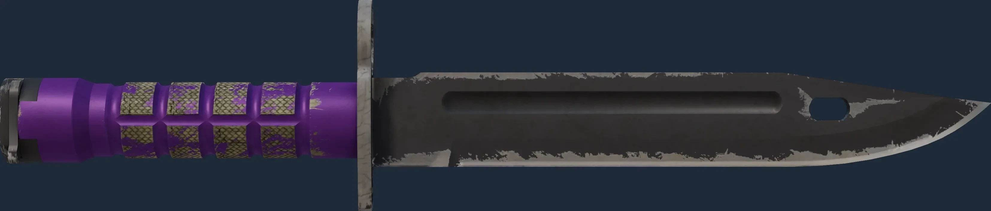 The Bayonet | Ultraviolet is a Covert grade skin for the Bayonet in Counter-Strike 2. It features a Custom Paint Job finish and was designed by Valve.
