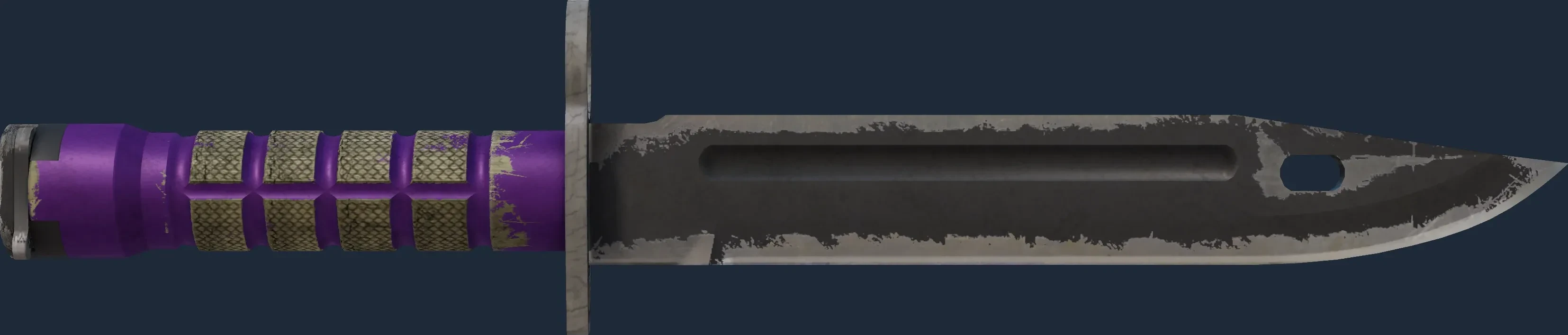 The Bayonet | Ultraviolet is a Covert grade skin for the Bayonet in Counter-Strike 2. It features a Custom Paint Job finish and was designed by Valve.