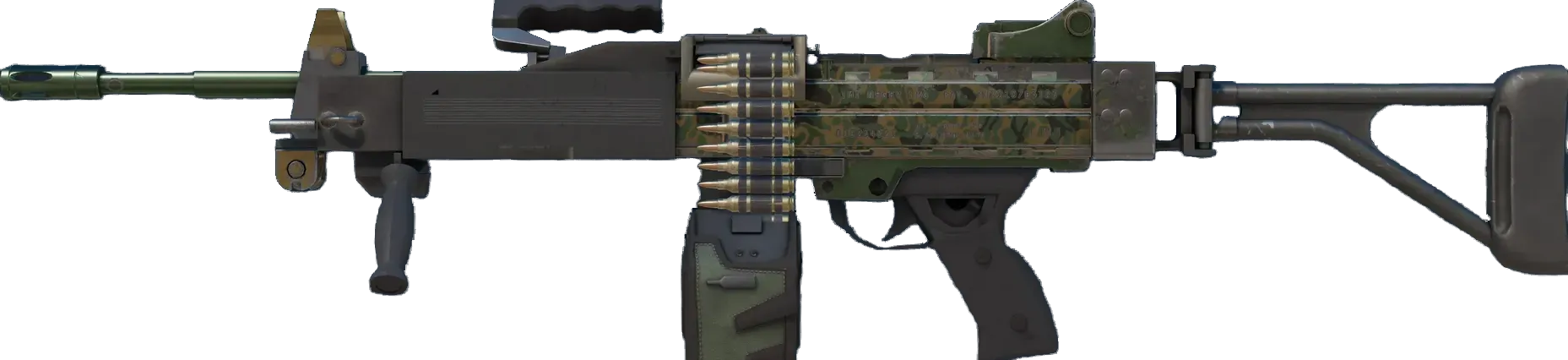 The Negev is a beast that can keep the enemy at bay with its pin-point supressive fire, provided you have the luxury of time to gain control over it. It has been covered in a metallic foil stamped with a camouflage pattern. _Remember your training_
