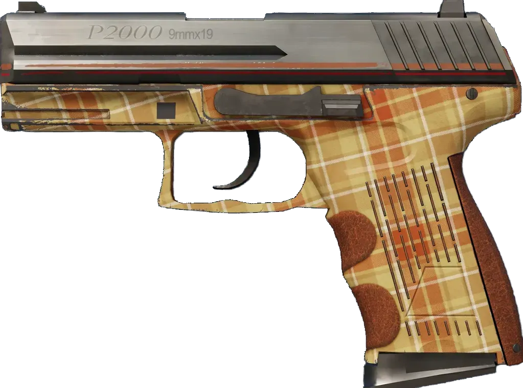 Accurate and controllable, the German-made P2000 is a serviceable first-round pistol that works best against unarmored opponents. It has been painted with a plaid hydrographic and parts of the grip have been wrapped in brown leather. _It's not fancy, but it gets you where you need to go_