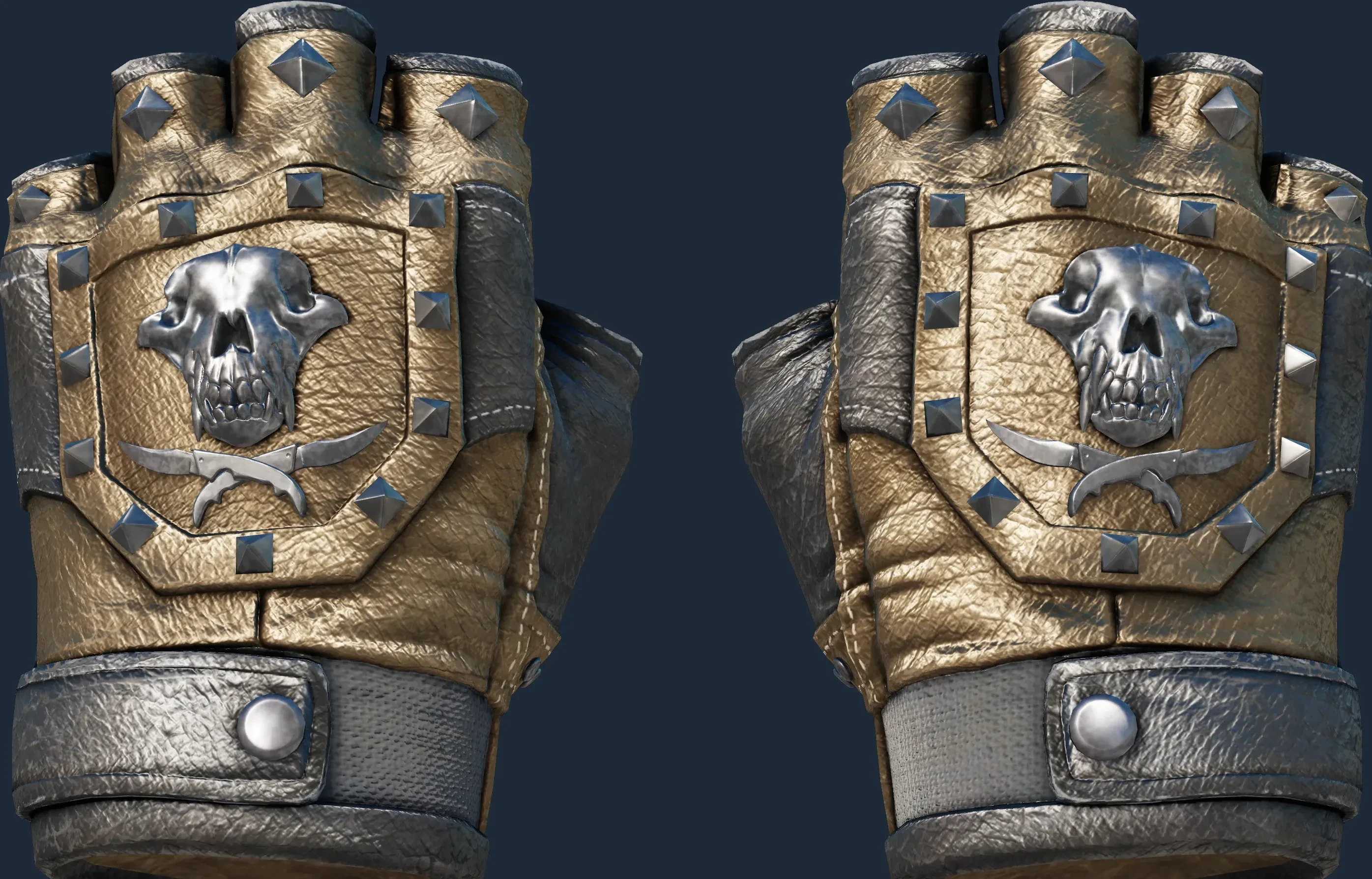 The Bloodhound Gloves | Bronzed is a Covert grade skin for the Bloodhound Gloves in Counter-Strike 2. It features a Custom Paint Job finish and was designed by Valve.
