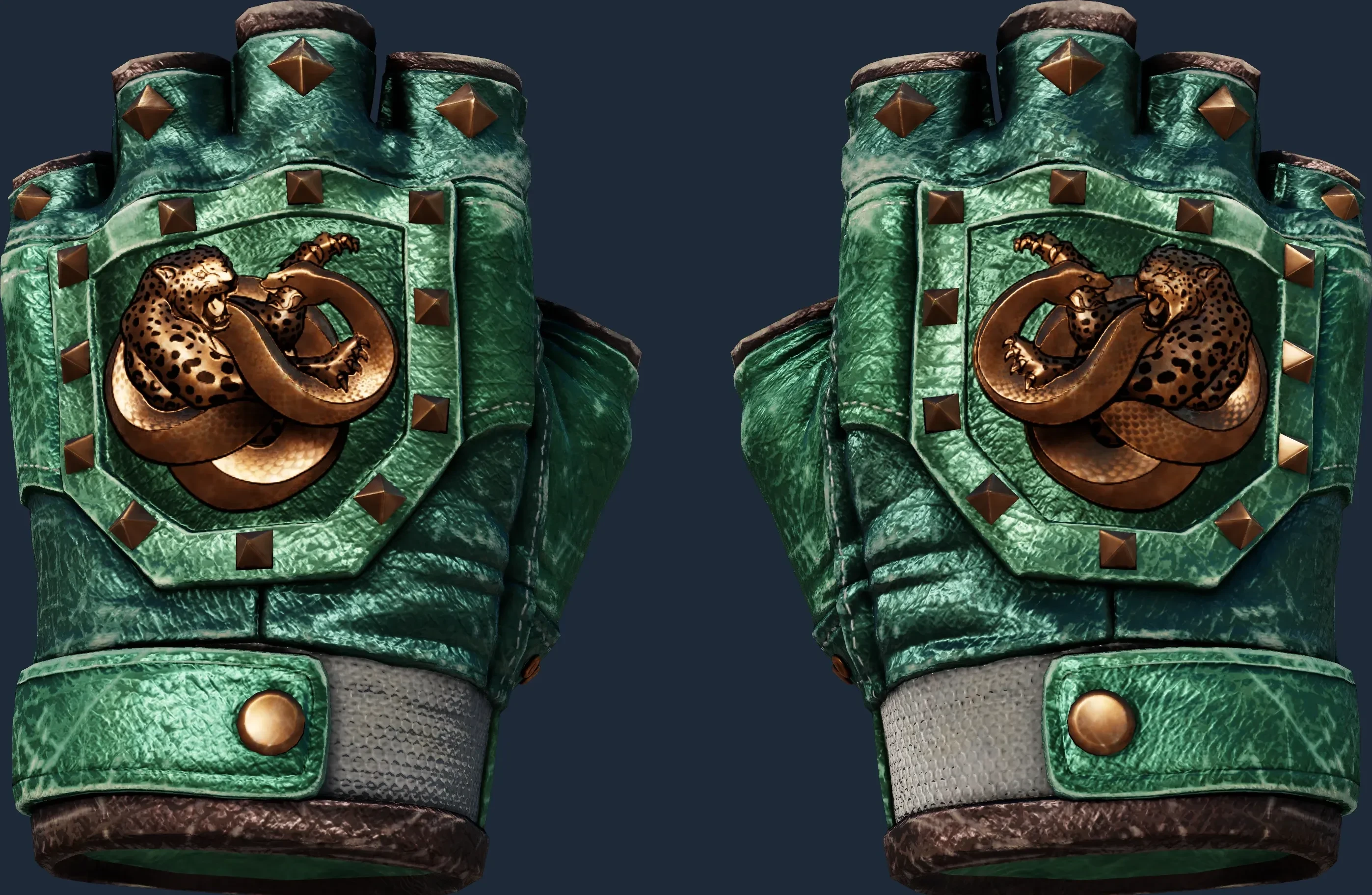 The Broken Fang Gloves | Jade is a Covert grade skin for the Broken Fang Gloves in Counter-Strike 2. It features a Custom Paint Job finish and was designed by Valve.