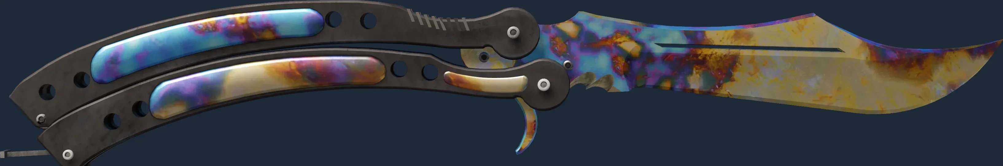The Butterfly Knife | Case Hardened is a Covert grade skin for the Butterfly Knife in Counter-Strike 2. It features a Custom Paint Job finish and was designed by Valve.