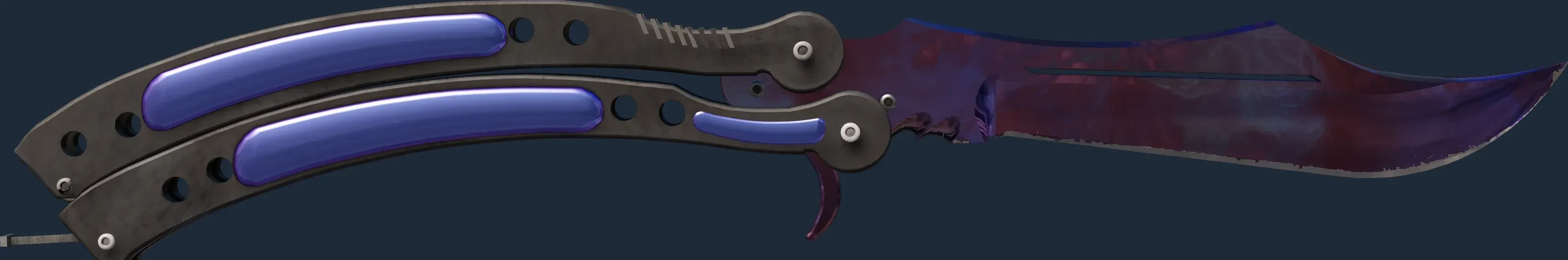 The Butterfly Knife | Doppler Black Pearl is a Covert grade skin for the Butterfly Knife in Counter-Strike 2. It features a Custom Paint Job finish and was designed by Valve.