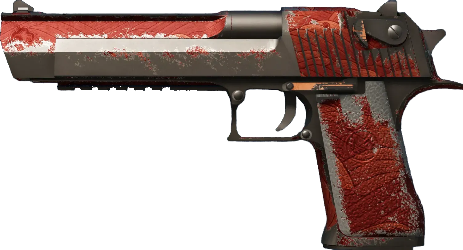As expensive as it is powerful, the pistols/desert-eagle" class="text-orange-500 hover:underline underline-offset-4 decoration-orange-500/30">Desert Eagle is an iconic pistol that is difficult to master but surprisingly accurate at long range. It has been painted with a hydrographic of a stormy sea over a red metallic base coat. _You think it's the same, but look again... subtlety makes all the difference_