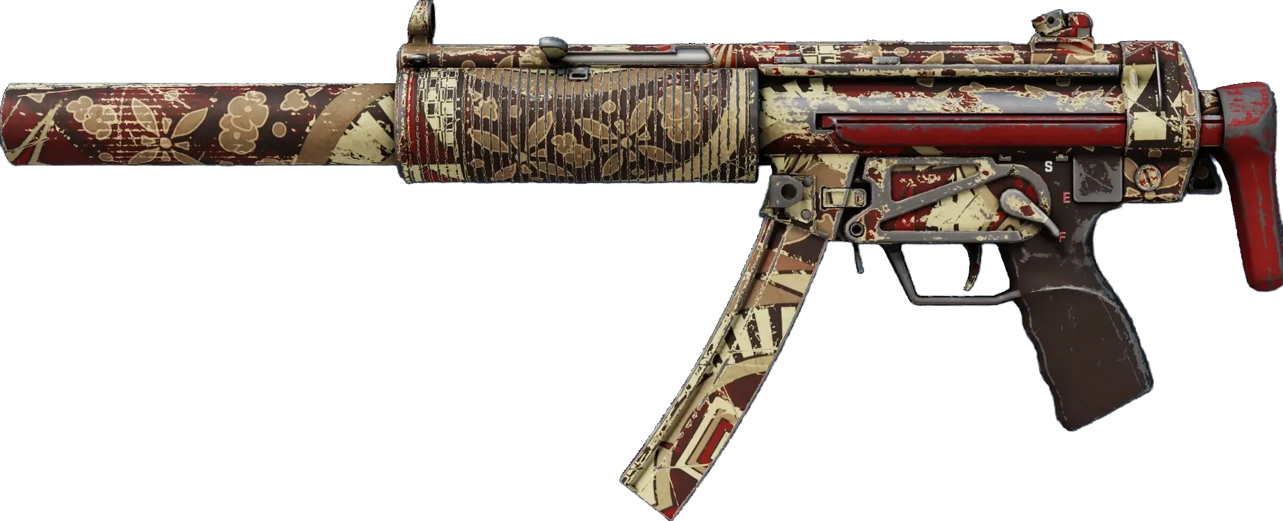 一直被模仿,但从未被超越。经典的 MP5 也许是世界上用法最通用、最受欢迎的微型冲锋枪。此 SD 变种最大特点在于已配有消音器,本已令人胆寒的武器如今杀人于无声之间。 这把武器绘有红色和棕褐色的各种图案nn最后机会,火车即将离站