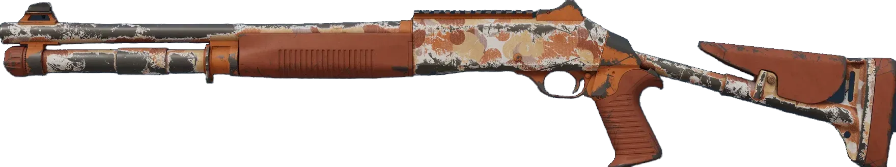 XM1014 是一把强大的全自动霰弹枪,其高昂的价格赋予了它高射速和室内清剿的能力。 枪身采用了橙棕褐斑点迷彩涂装。nn斑点覆盖率:随机