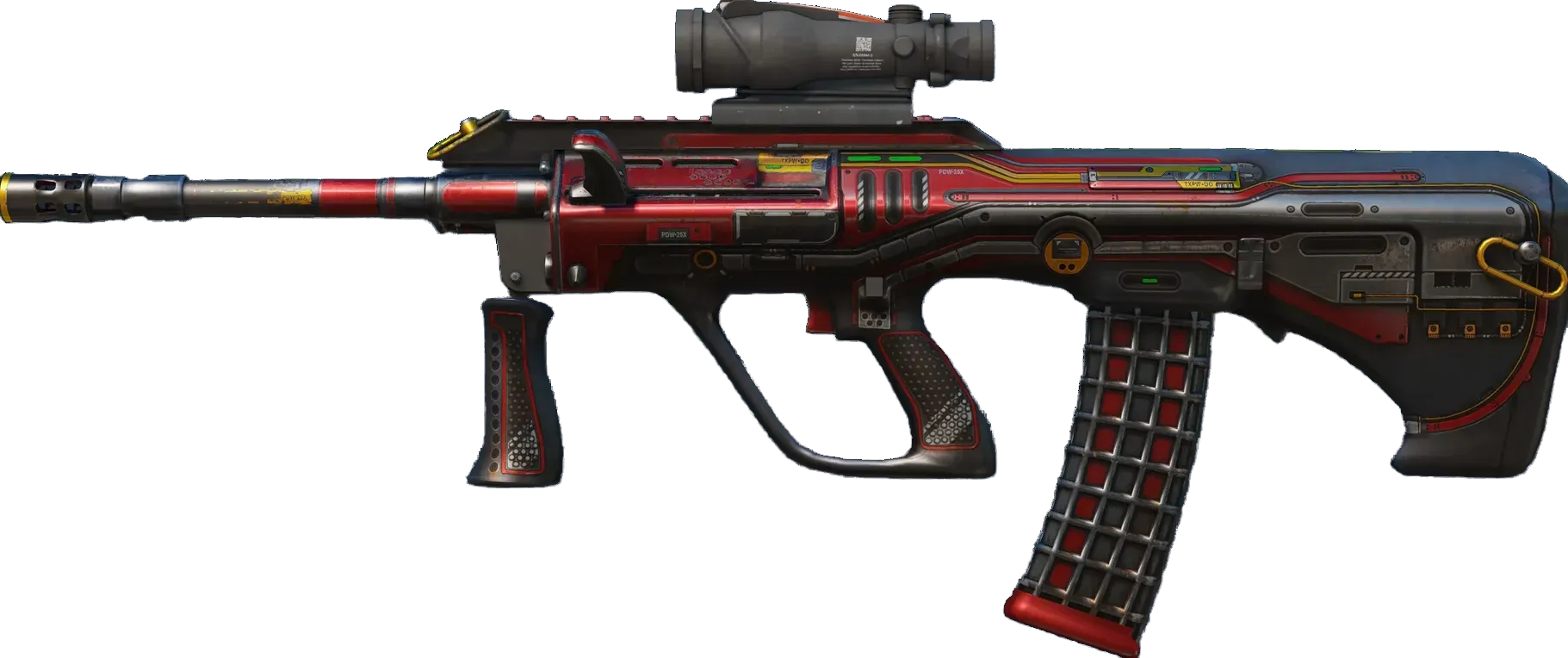 Powerful and accurate, the AUG scoped assault rifle compensates for its long reload times with low spread and a high rate of fire. It has been custom designed by renowned artist Syd Mead. _In the past he gave us visions of the future; in the present he placed the future in our hands..._