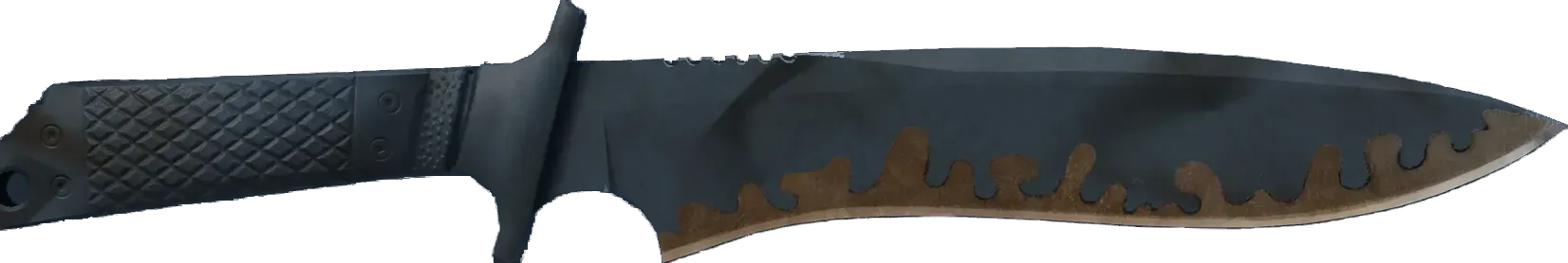 A classic of the Counter-Strike series, the edge of this knife is press-fit Stellite perfectly held in place due to its precise fit with the titanium on the blade's cheek and spine. The handle is fossilized mastodon ivory held in a carbon fibre pocket. It has been spray-painted with a tape mask pattern in a night ops color scheme. _Spray... Pray... Paint... Stab._