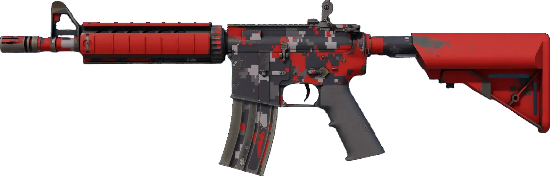 Hodnota float pro M4A4 | Red Ddpat se pohybuje od 0.00 do 1.00, což znamená, že skin je k dispozici ve všech stupních opotřebení. Pro každý stupeň opotřebení existuje také verze StatTrak pro Red Ddpat.