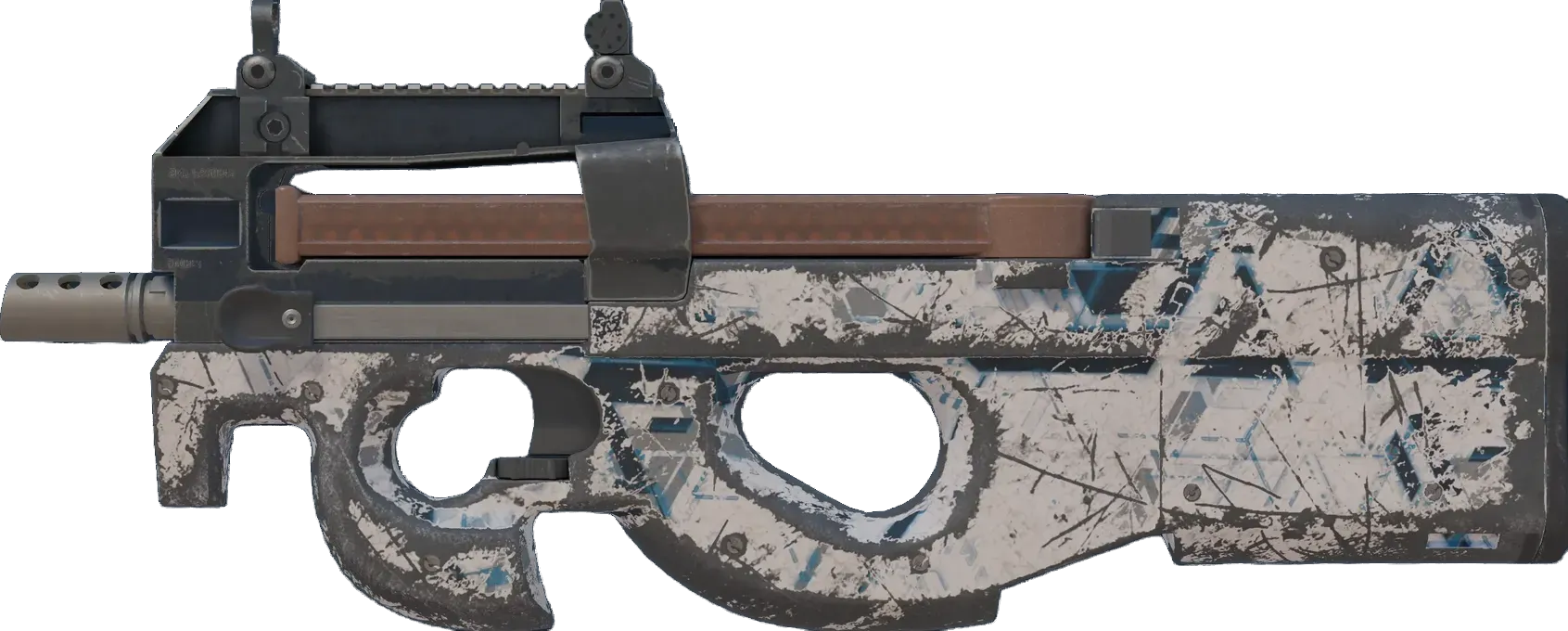 Easily recognizable for its unique bullpup design, the P90 is a great weapon to shoot on the move due to its high-capacity magazine and low recoil. A multicolored pattern of an isometric grid has been applied. _You remember pain, I remember victory_