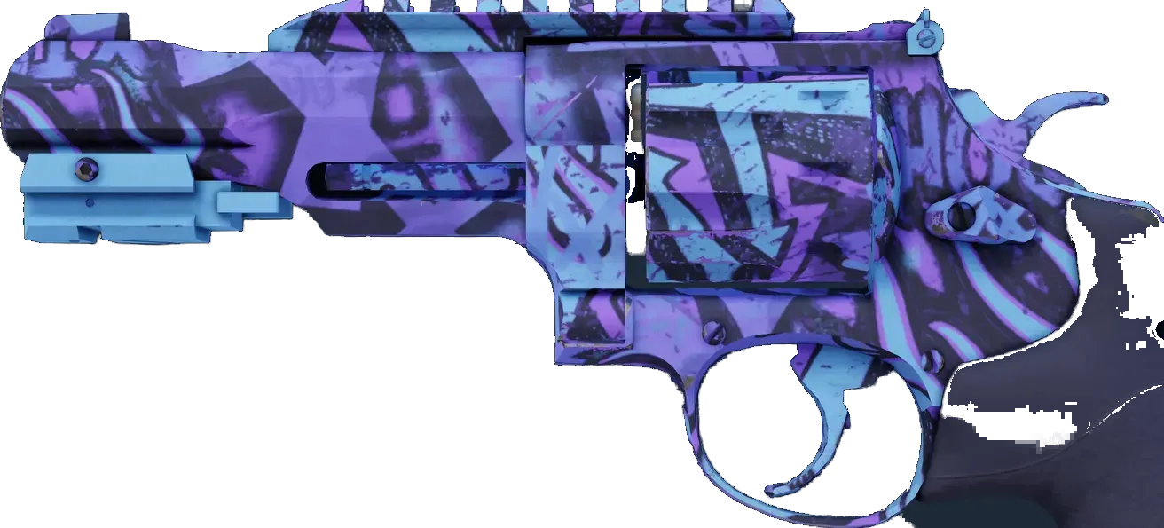 The R8 Revolver delivers a highly accurate and powerful round at the expense of a lengthy trigger-pull. Firing rapidly by fanning the hammer may be the best option when point-blank stopping power is required. A multicolored pattern of various Phoenix Connexion graffiti has been applied. _"They cannot stop us now!"_