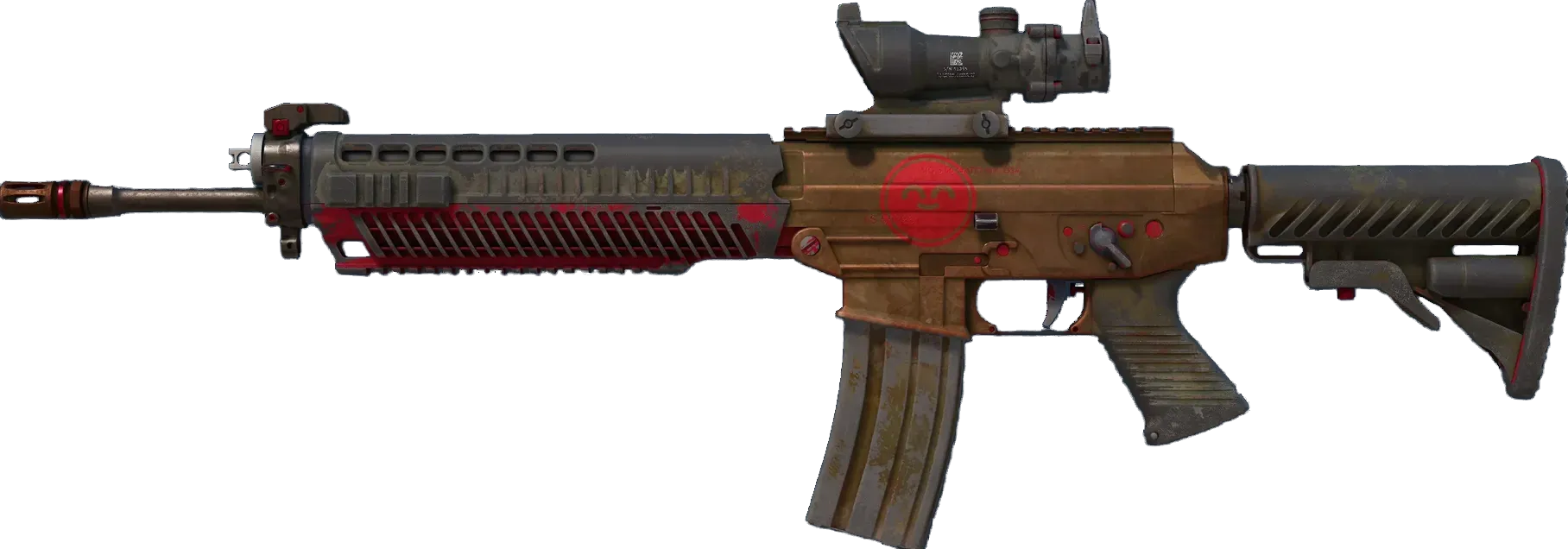 The terrorist-exclusive SG553 is a premium scoped alternative to the AK47 for effective long-range engagement. It has been custom painted with a metallic bronze base and finished with red accents. _"Aww, look at the lil' fella"_