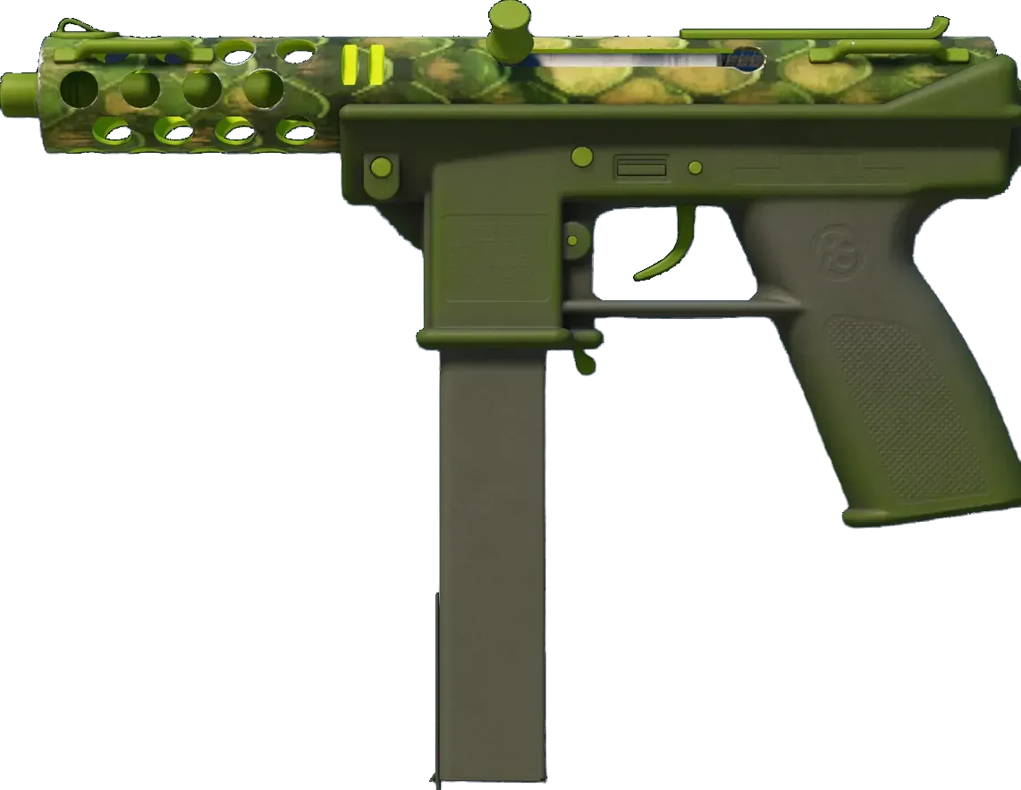 An ideal pistol for the Terrorist on the move, the Tec-9 is lethal in close quarters and features a high magazine capacity. A green snakeskin pattern has been applied. _Crush and kill_
