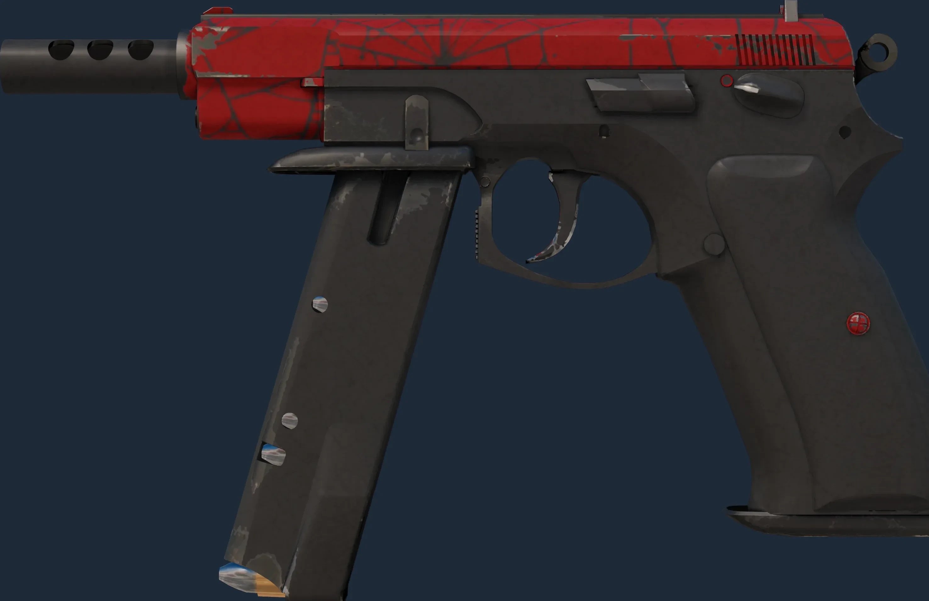 The CZ75-Auto | Crimson Web is a Covert grade skin for the CZ75-Auto in Counter-Strike 2. It features a Custom Paint Job finish and was designed by Valve.