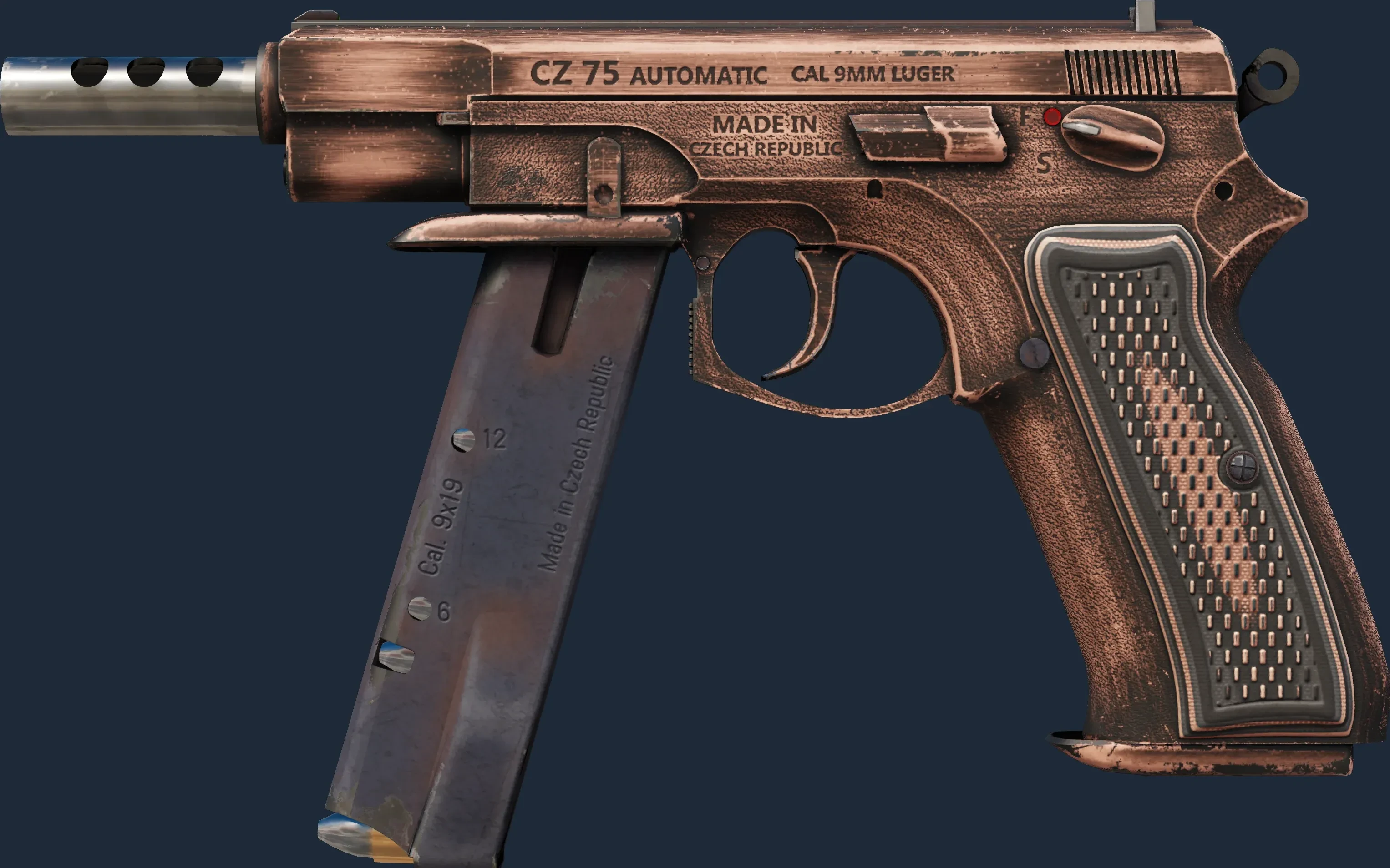 The CZ75-Auto | Distressed is a Covert grade skin for the CZ75-Auto in Counter-Strike 2. It features a Custom Paint Job finish and was designed by Teo.