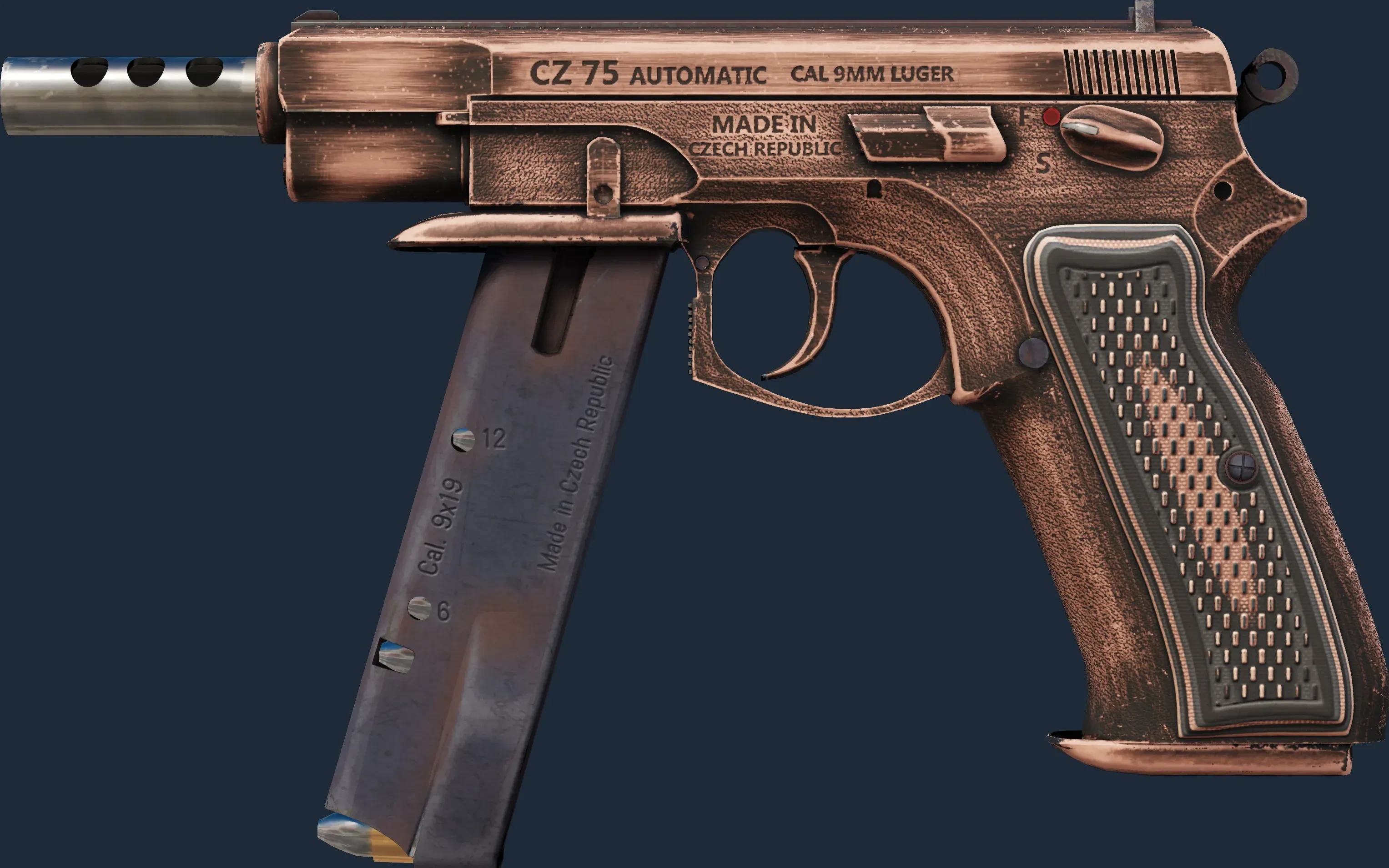 The CZ75-Auto | Distressed is a Covert grade skin for the CZ75-Auto in Counter-Strike 2. It features a Custom Paint Job finish and was designed by Teo.